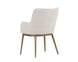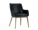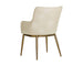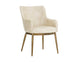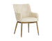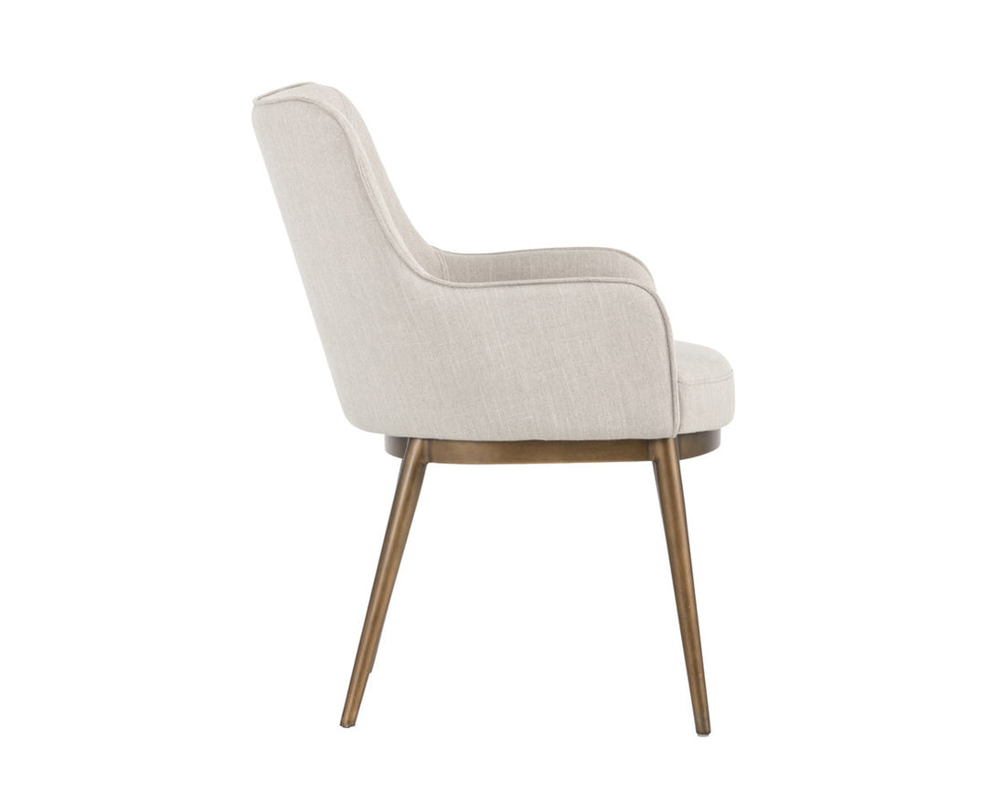 This compact barrel back armchair will add rustic and mid-century modern styling to dining and living spaces. Stocked in our beige linen fabric with antique brass steel frame and legs.