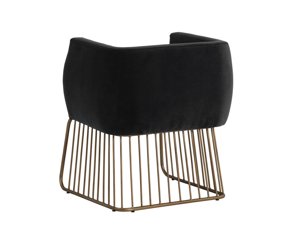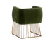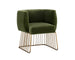Rustic and modern charm come together in this dining chair. Stocked in our soft forest green and shadow grey fabric with a comfortable seat and unique brushed antique brass cage-style base. Perfect for dining, lounge and office spaces.