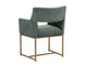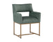 A refreshing take on Scandinavian design, this dining chair is a great addition to any dining or living space. Upholstered in aura teal fabric for eyecatching comfort. Sits atop a powder coated steel base with a rustic bronze finish. Features a square solid poplar wood frame. Pairs well with the coordinating dining table. As wood is an organic, porous material, these pieces will contain natural variation of texture and may also exhibit fine indentations and cracks. Wood pieces will also display a disparity of colour and grain, and visible knots and burls that add to the character of each piece.