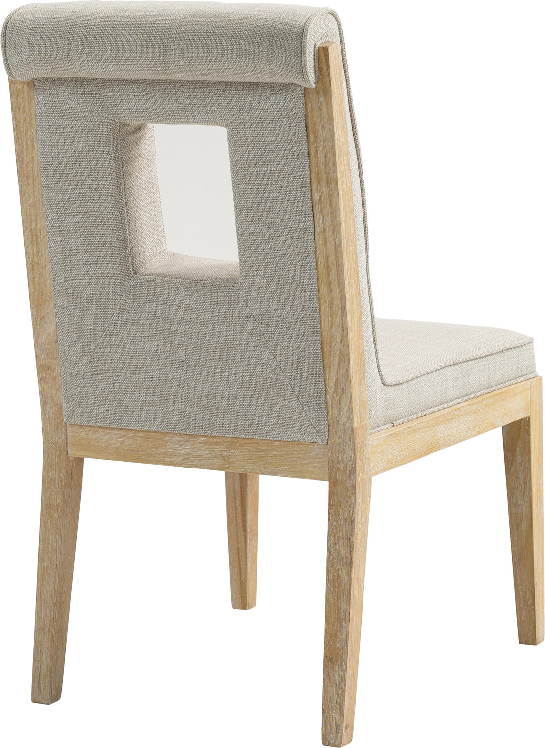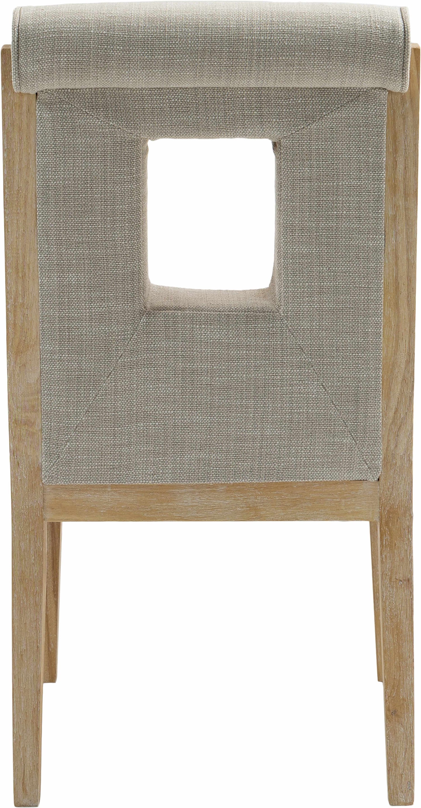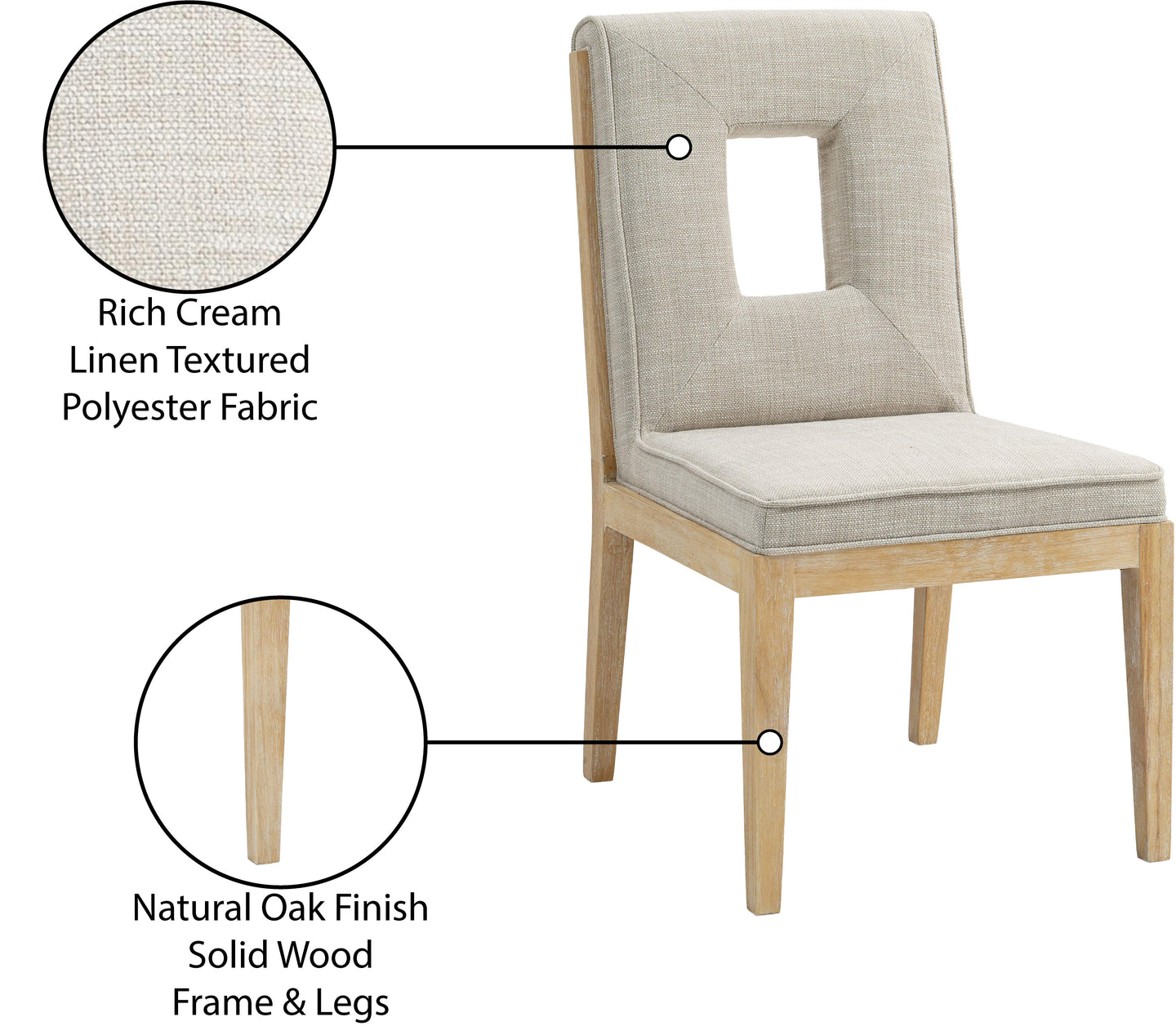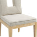 A masterpiece of modern elegance and comfort, the Gwendolyn cream linen textured fabric dining side chair is where modern design meets timeless charm. Designed with comfort in mind, it features a high back and luxurious cushioning, perfect for long dinners or lively gatherings. The natural oak wood frame adds a rustic touch, effortlessly balancing the contemporary fabric with a hint of warmth and tradition.