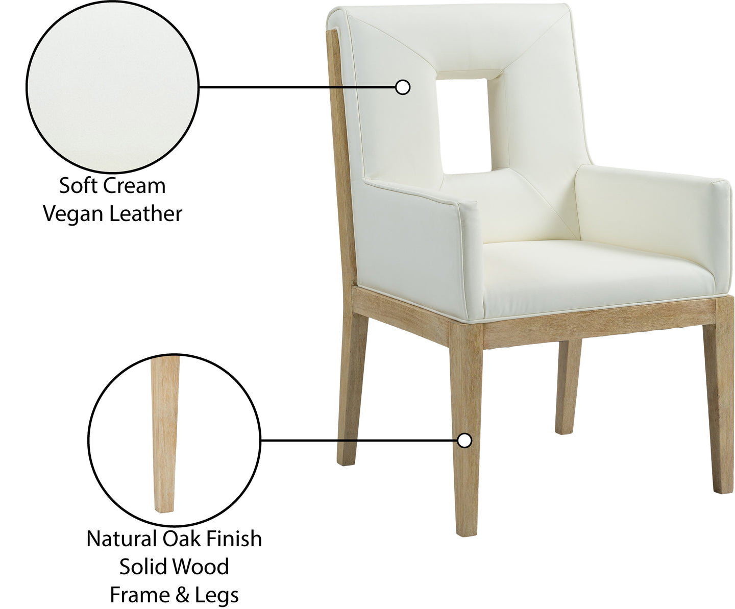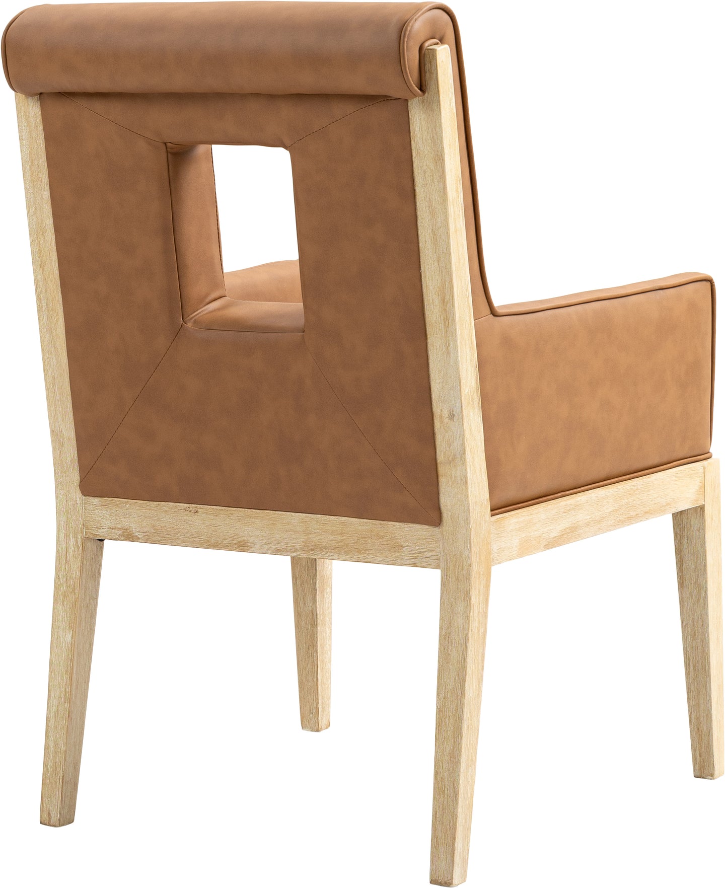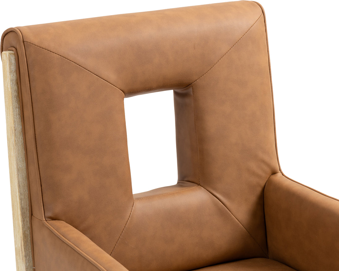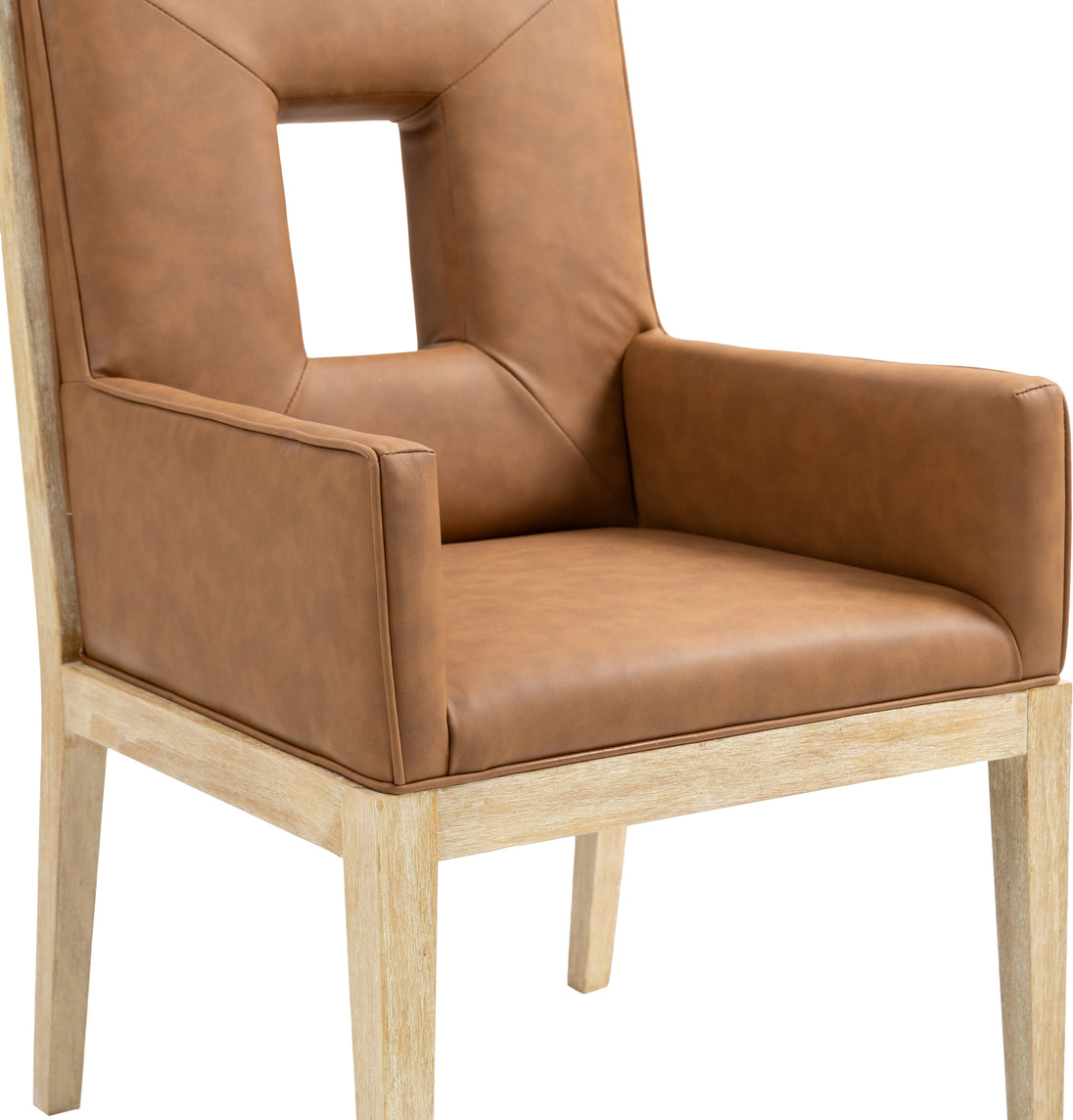 A masterpiece of modern elegance and comfort, the Gwendolyn black vegan leather dining armchair is where modern design meets timeless charm. Designed with comfort in mind, it features a high back and luxurious cushioning, perfect for long dinners or lively gatherings. The natural oak wood frame adds a rustic touch, effortlessly balancing the contemporary fabric with a hint of warmth and tradition.