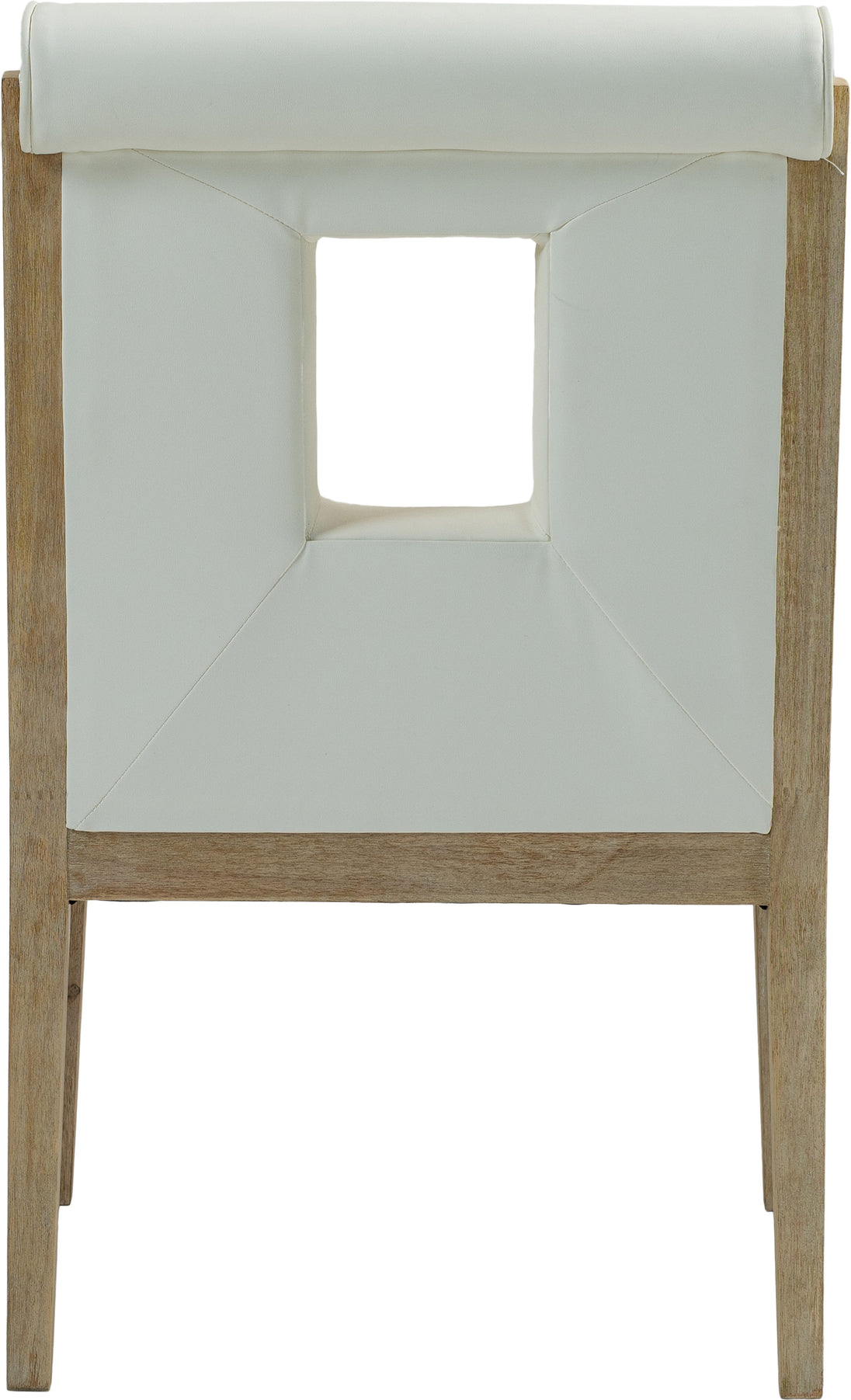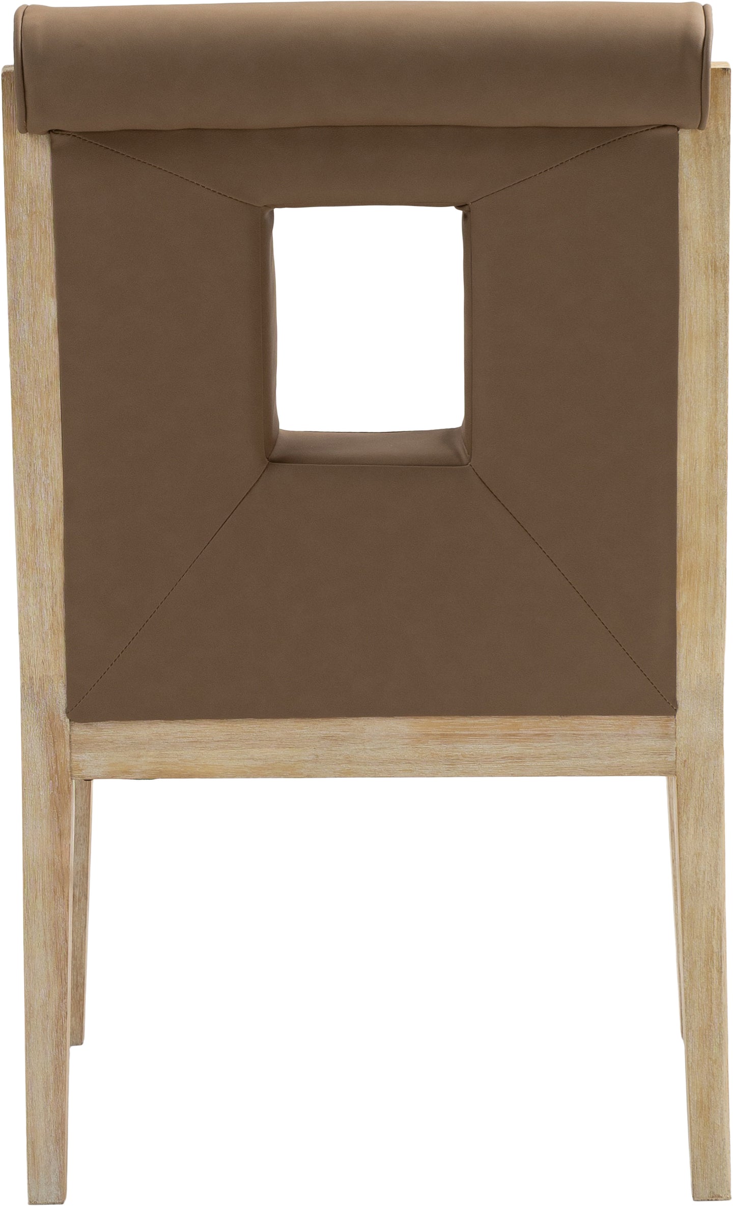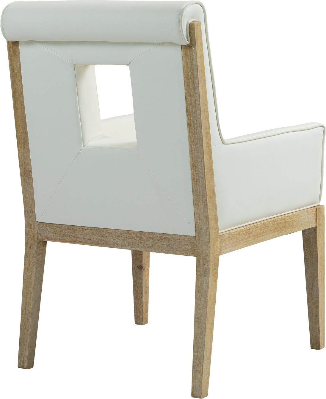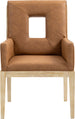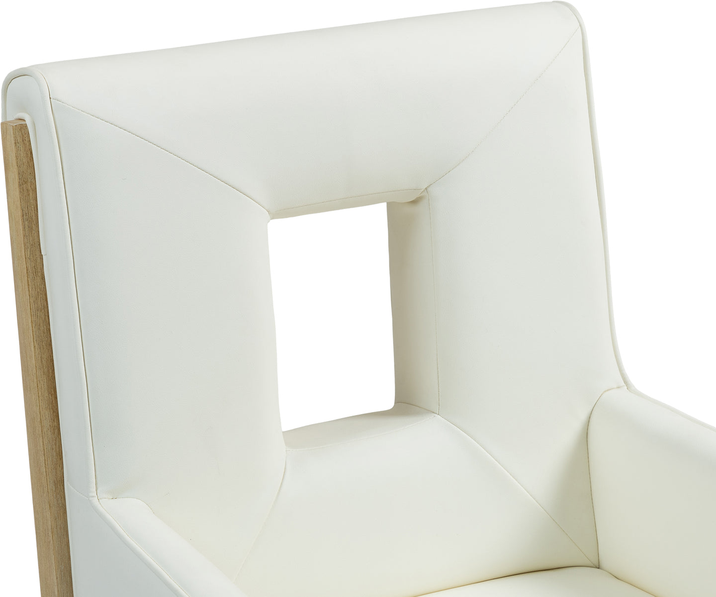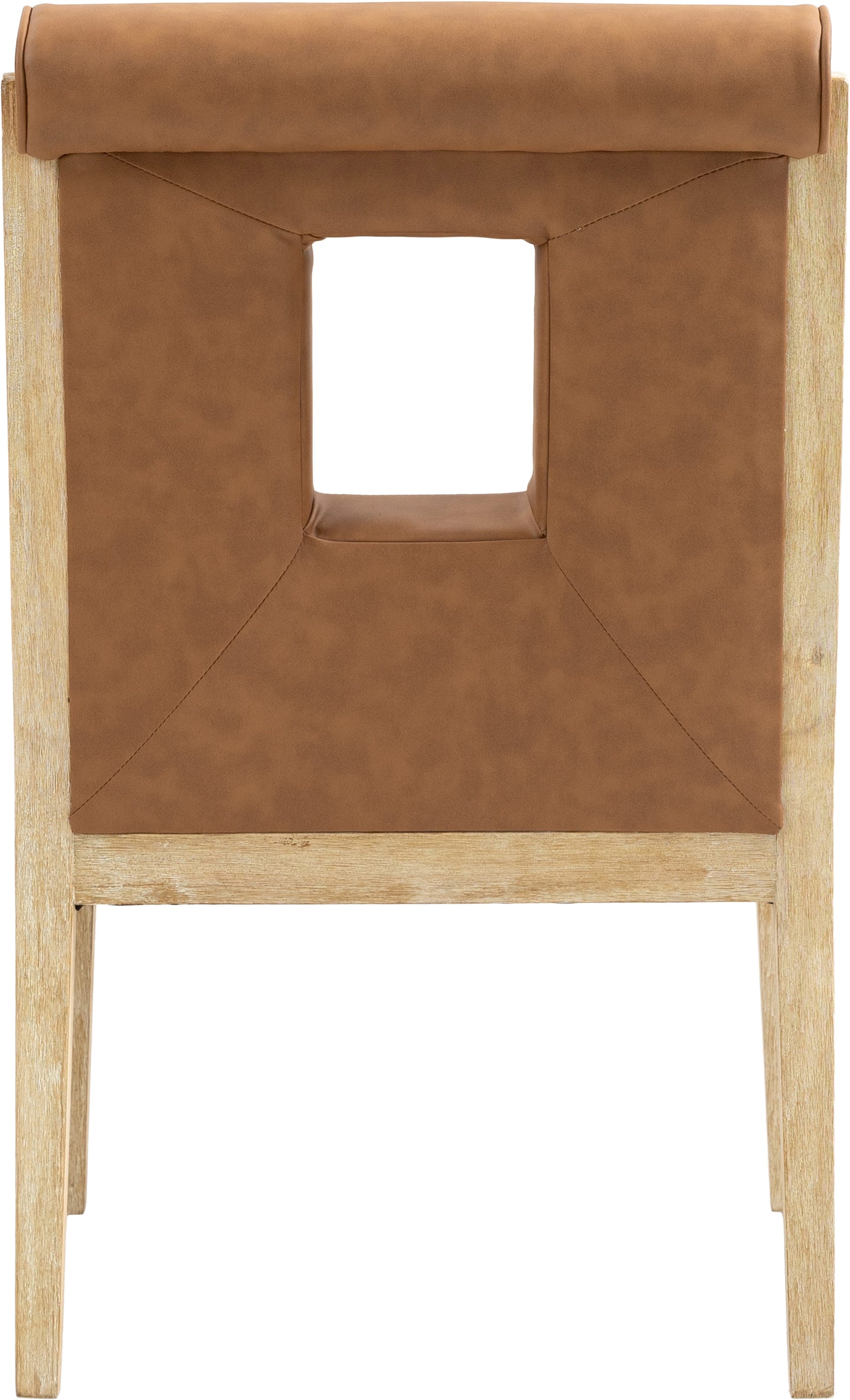 A masterpiece of modern elegance and comfort, the Gwendolyn black vegan leather dining armchair is where modern design meets timeless charm. Designed with comfort in mind, it features a high back and luxurious cushioning, perfect for long dinners or lively gatherings. The natural oak wood frame adds a rustic touch, effortlessly balancing the contemporary fabric with a hint of warmth and tradition.