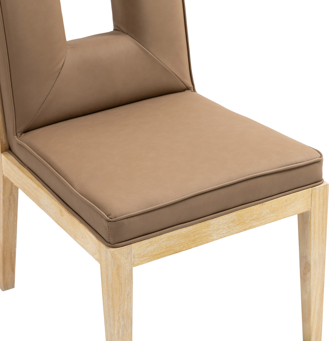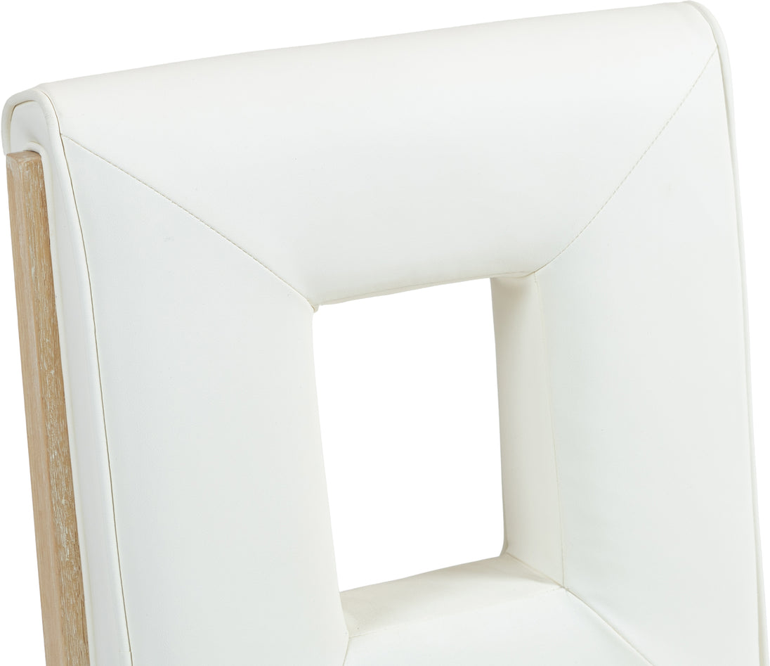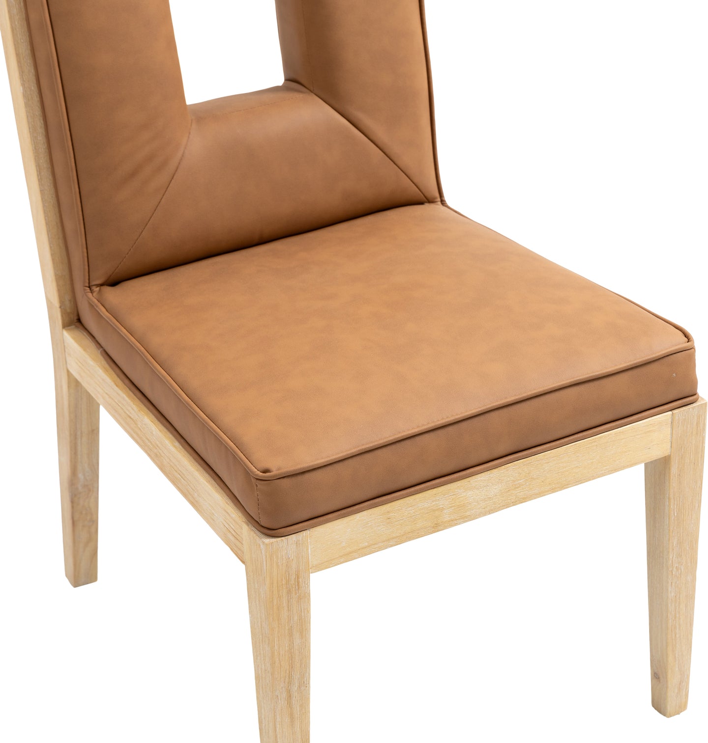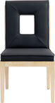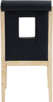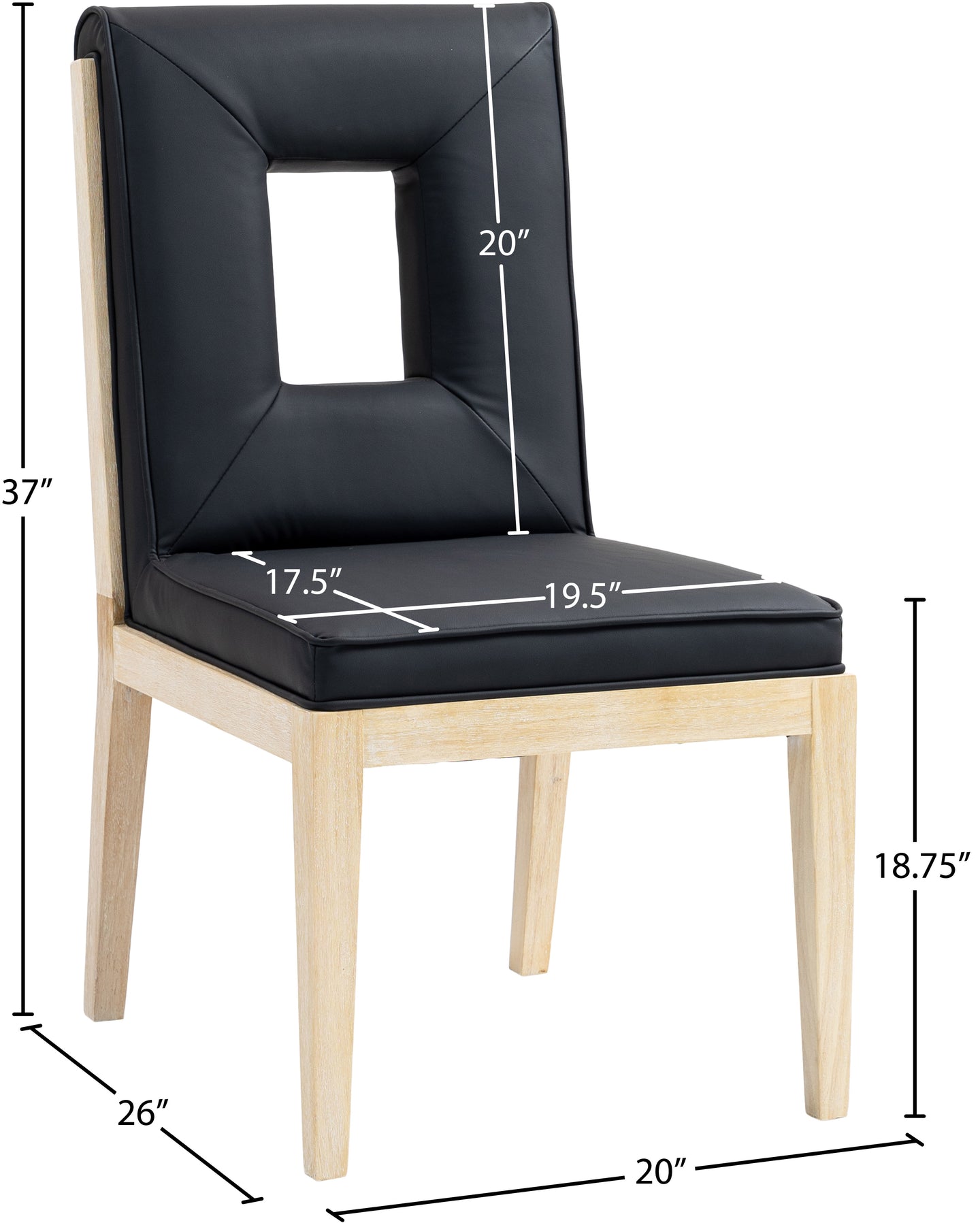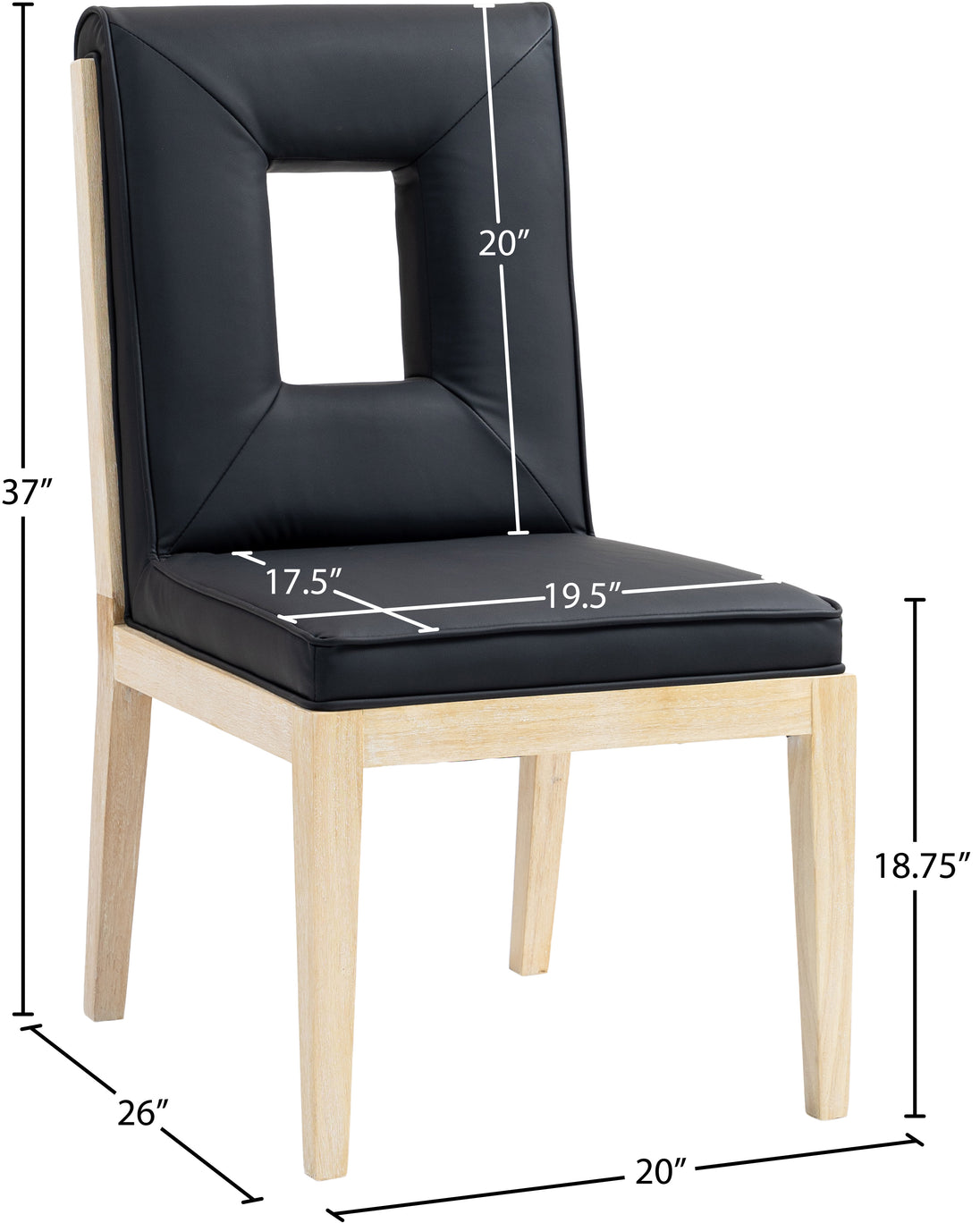 A masterpiece of modern elegance and comfort, the Gwendolyn black vegan leather dining side chair is where modern design meets timeless charm. Designed with comfort in mind, it features a high back and luxurious cushioning, perfect for long dinners or lively gatherings. The natural oak wood frame adds a rustic touch, effortlessly balancing the contemporary fabric with a hint of warmth and tradition.