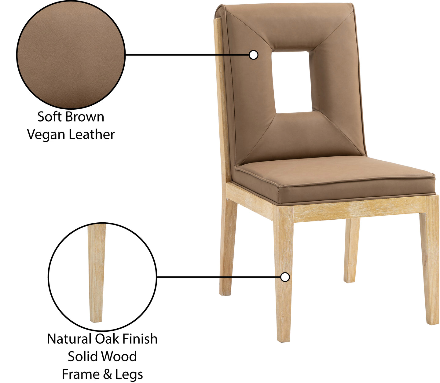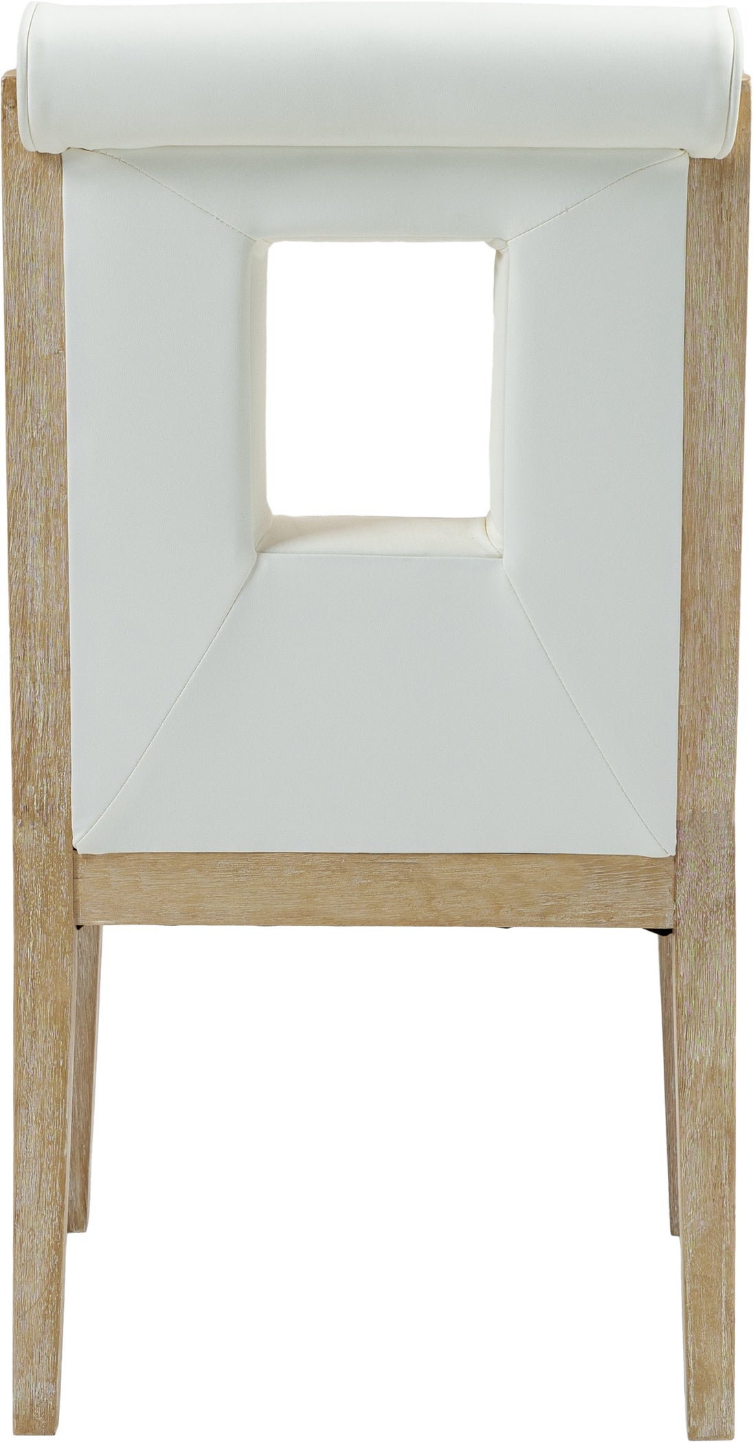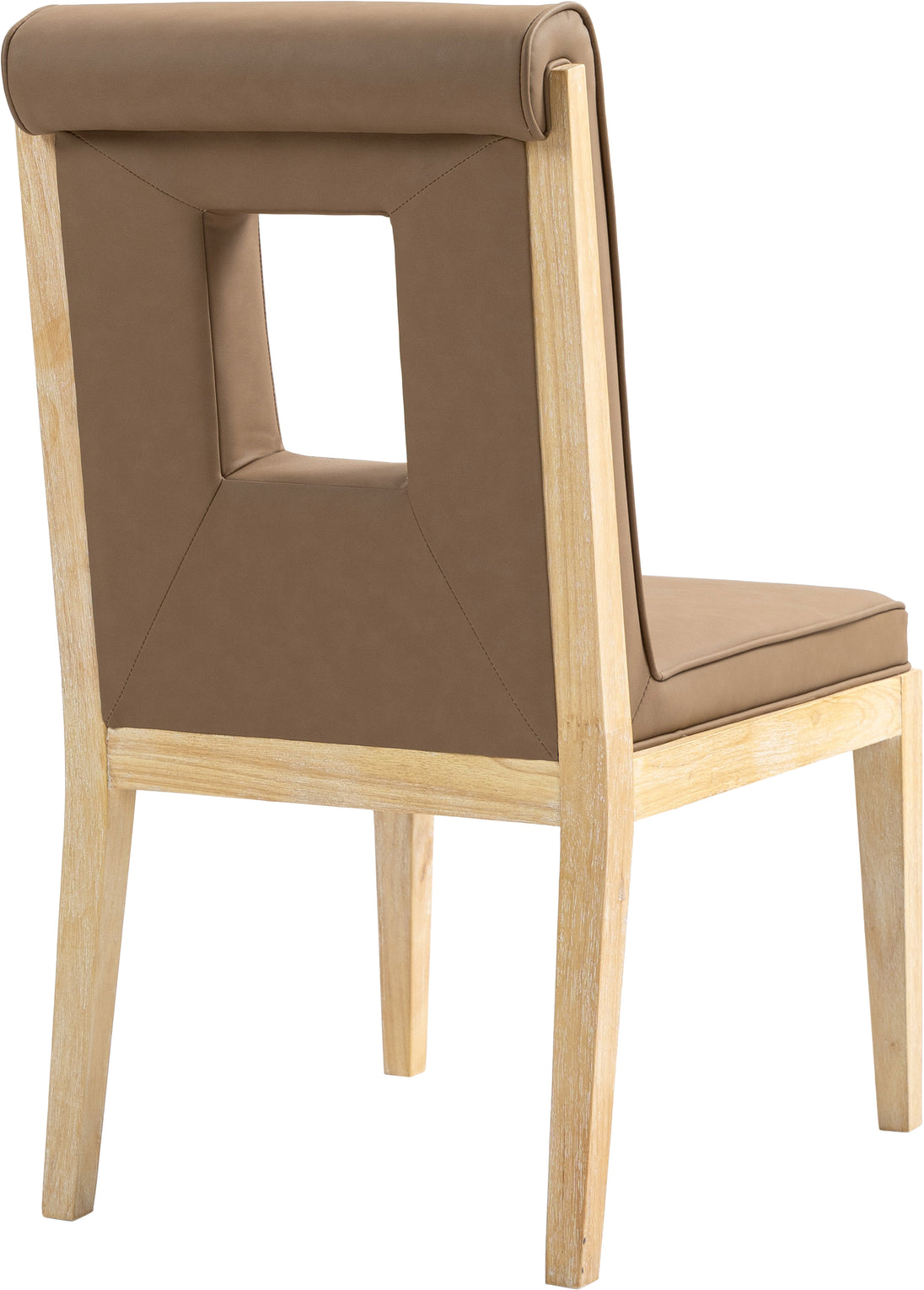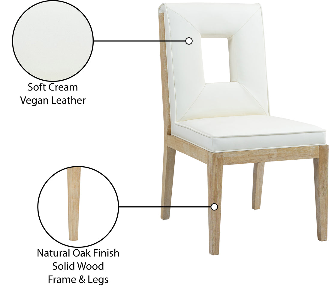 A masterpiece of modern elegance and comfort, the Gwendolyn black vegan leather dining side chair is where modern design meets timeless charm. Designed with comfort in mind, it features a high back and luxurious cushioning, perfect for long dinners or lively gatherings. The natural oak wood frame adds a rustic touch, effortlessly balancing the contemporary fabric with a hint of warmth and tradition.