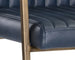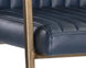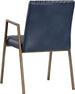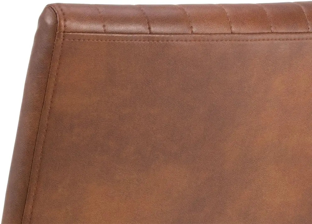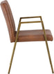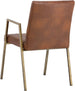 This compact dining armchair from our Ikon collection will bring a sophisticated industrial style to any space. Features bold channel stitching on the seat and seatback and finished with a brushed antique brass frame. Available in bravo ash, cognac and admiral faux leather. Handle With Care: This design has been crafted with faux leather. Faux leather is manufactured to reflect the natural characteristics of leather; as such, colour variations, markings, wrinkles, grooves, and light scratches are appreciated characteristics. No two pieces will be alike. Visit our Product Care page for more information on how to ensure the lasting beauty of this piece.