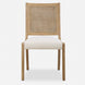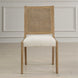 Casual coastal inspired styling with elevated details in the swooped seat frame in solid wood, finished in light oak ceruse. The supportive rattan caned back is paired with a plush seat upholstered in a frost toned polyester fabric with a toxin-free, eco friendly treatment to help resist water based stains. Seat height is 19". Packed 2 per box but priced individually. Must be purchased in increments of 2.