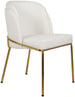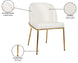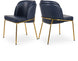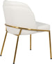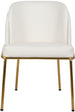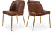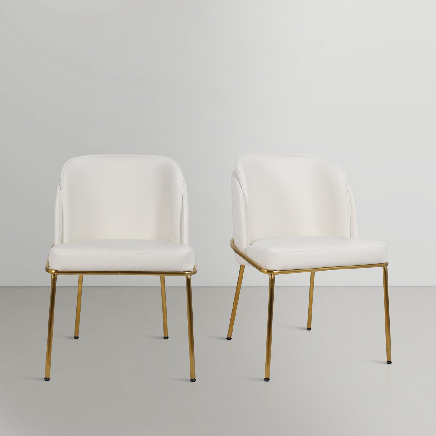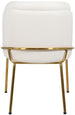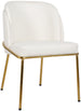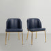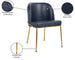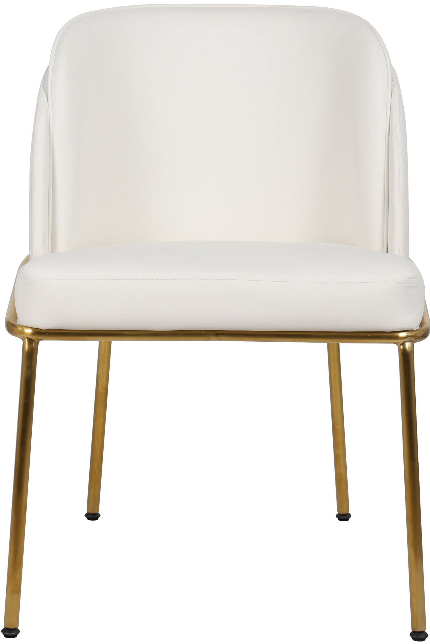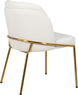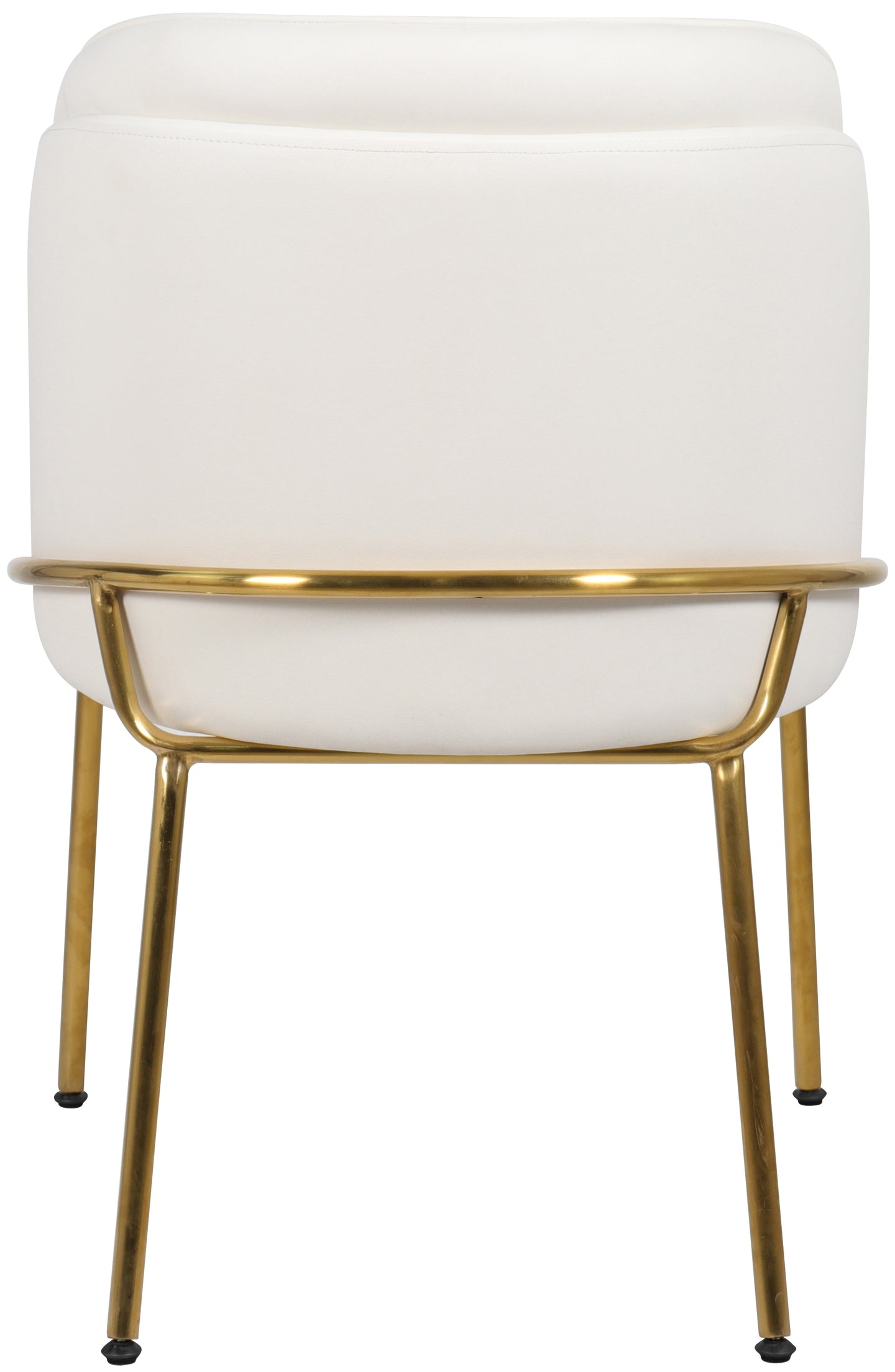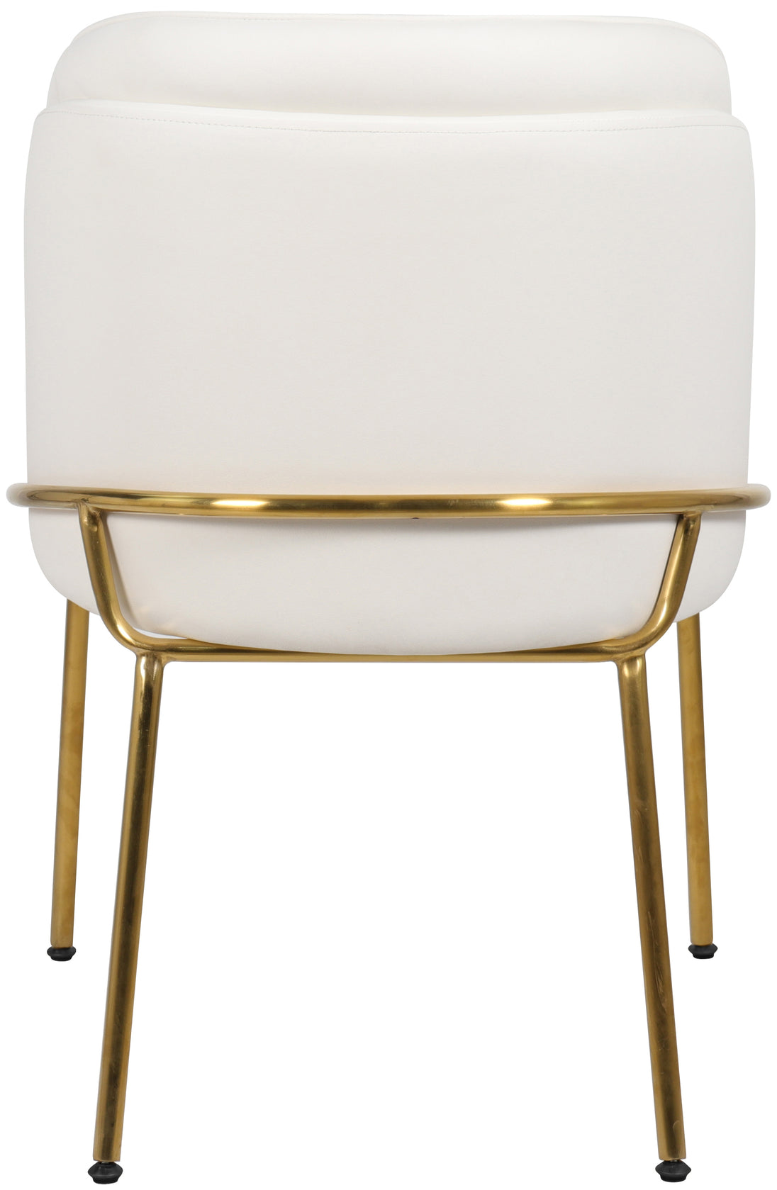 Give your dining room an upscale look with this Jagger vegan leather dining chair. The seat and back of this lovely chair comes upholstered in black vegan leather material that looks so genuine, only you will know it's not the real thing. Brushed gold iron legs on this chair lend it an upscale look and adds to its overall contemporary panache.