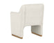 Make a bold statement with this spectacular dining armchair that will elevate any dining space. Stocked in fior vanilla fabric and completed with a gold stainless steel base. Also available in meg dark emerald and ash fabrics.