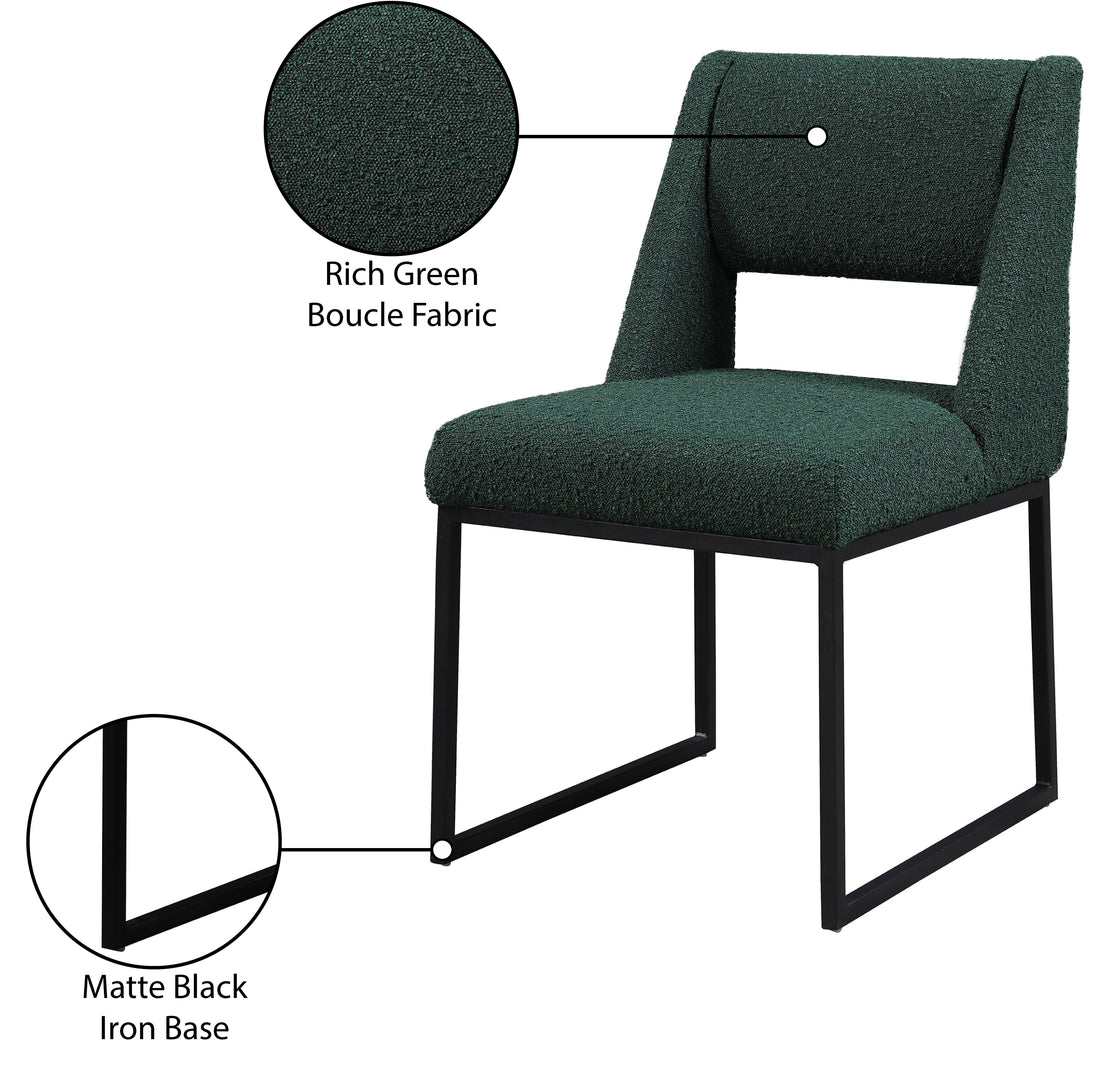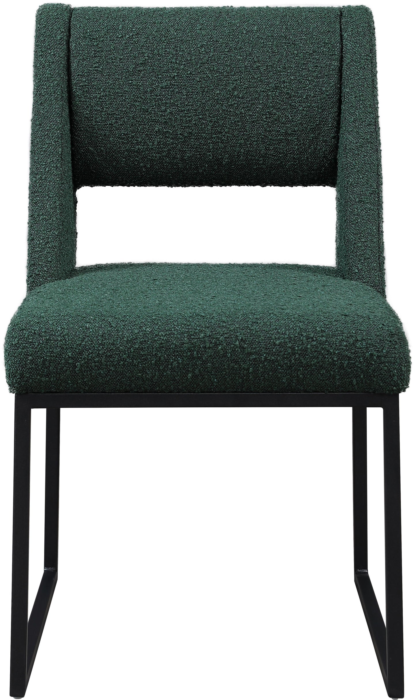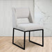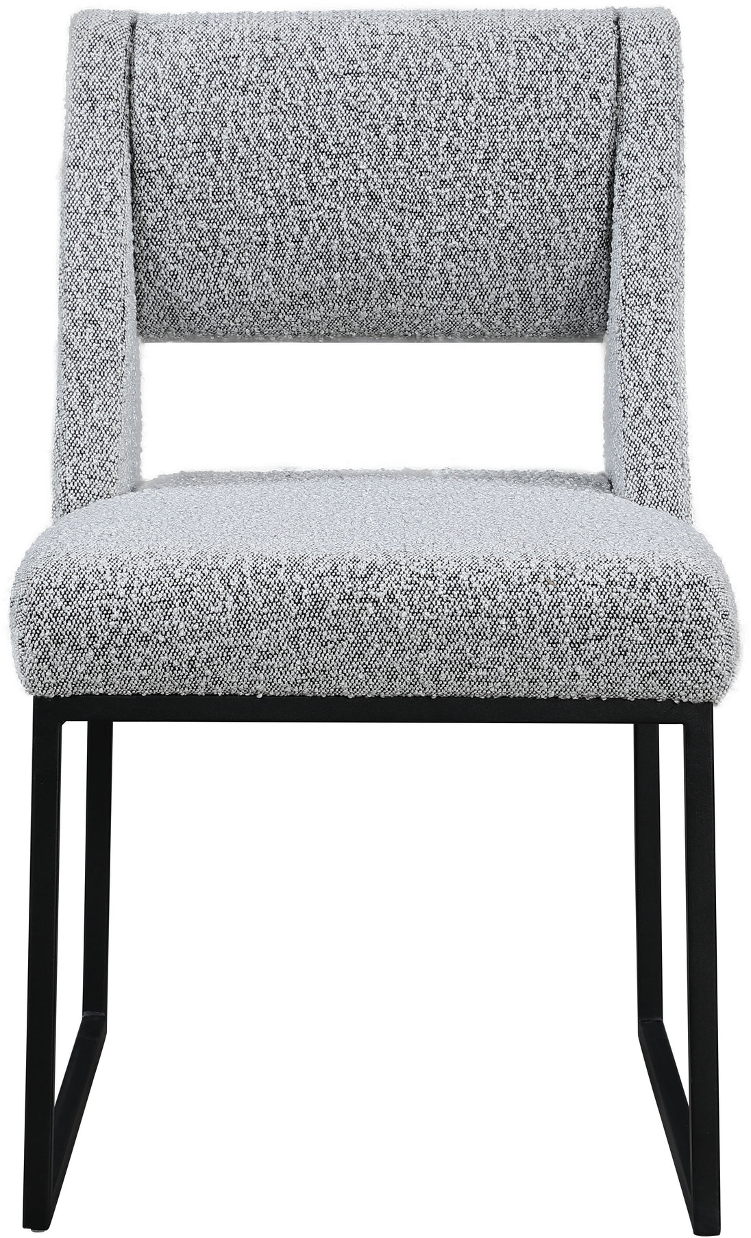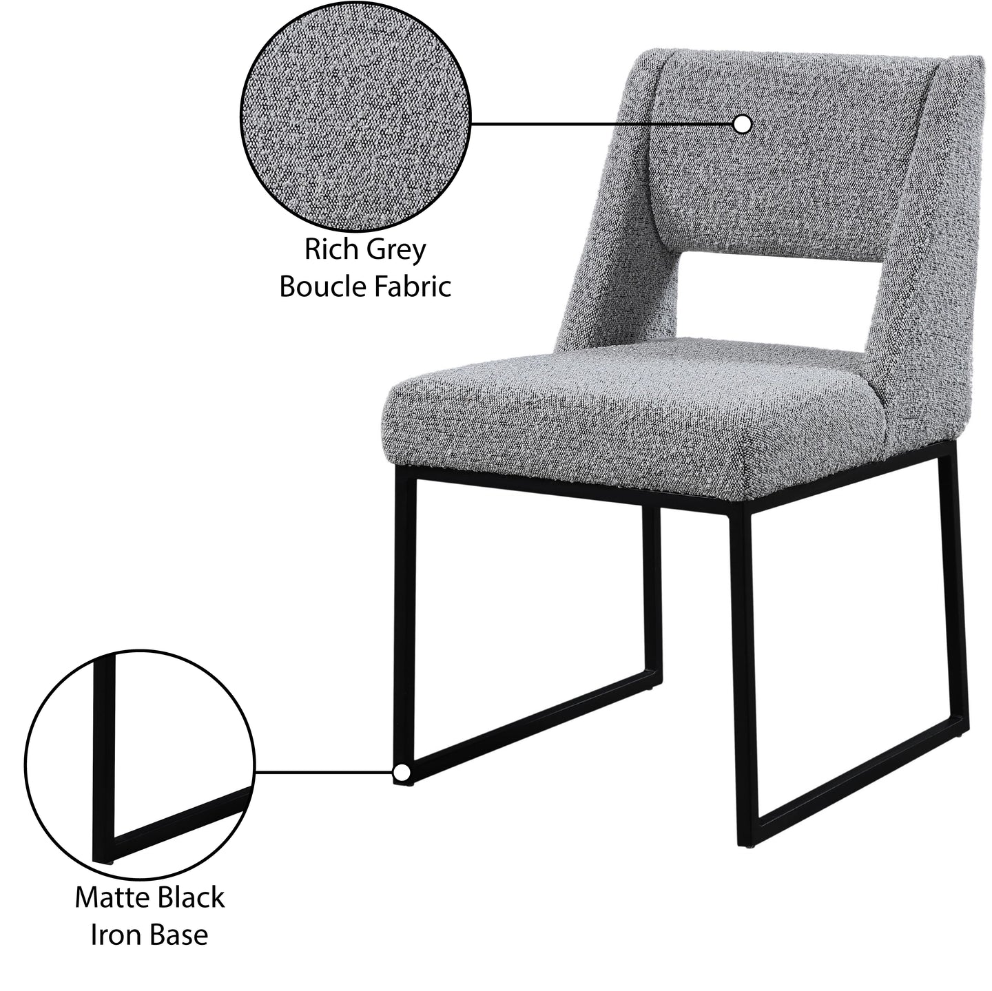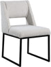 Give your dining area a contemporary makeover with this Jayce cream boucle fabric dining chair. Featuring a matte black iron base and rich cream boucle fabric, this dining chair is both sturdy and cozy. Its contemporary design is ideal for any modern home, and its neutral cream color matches any color dining table. Its plush boucle upholstery provides you with a comfortable pace to sit, and its open rectangular back is stylish while adding spine support.