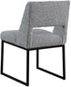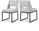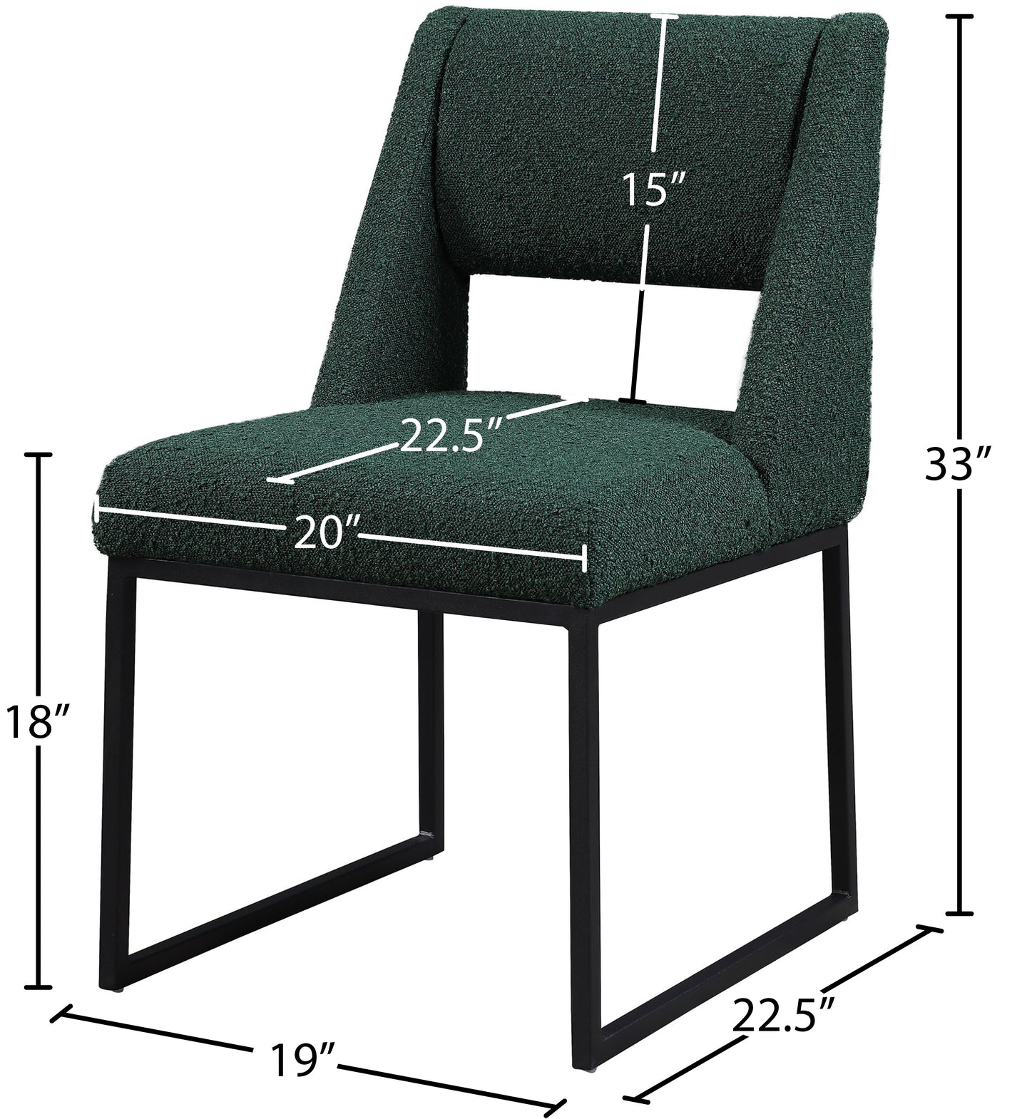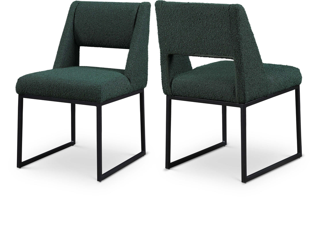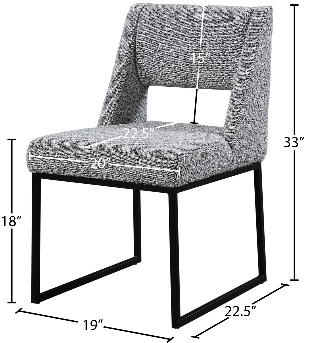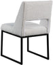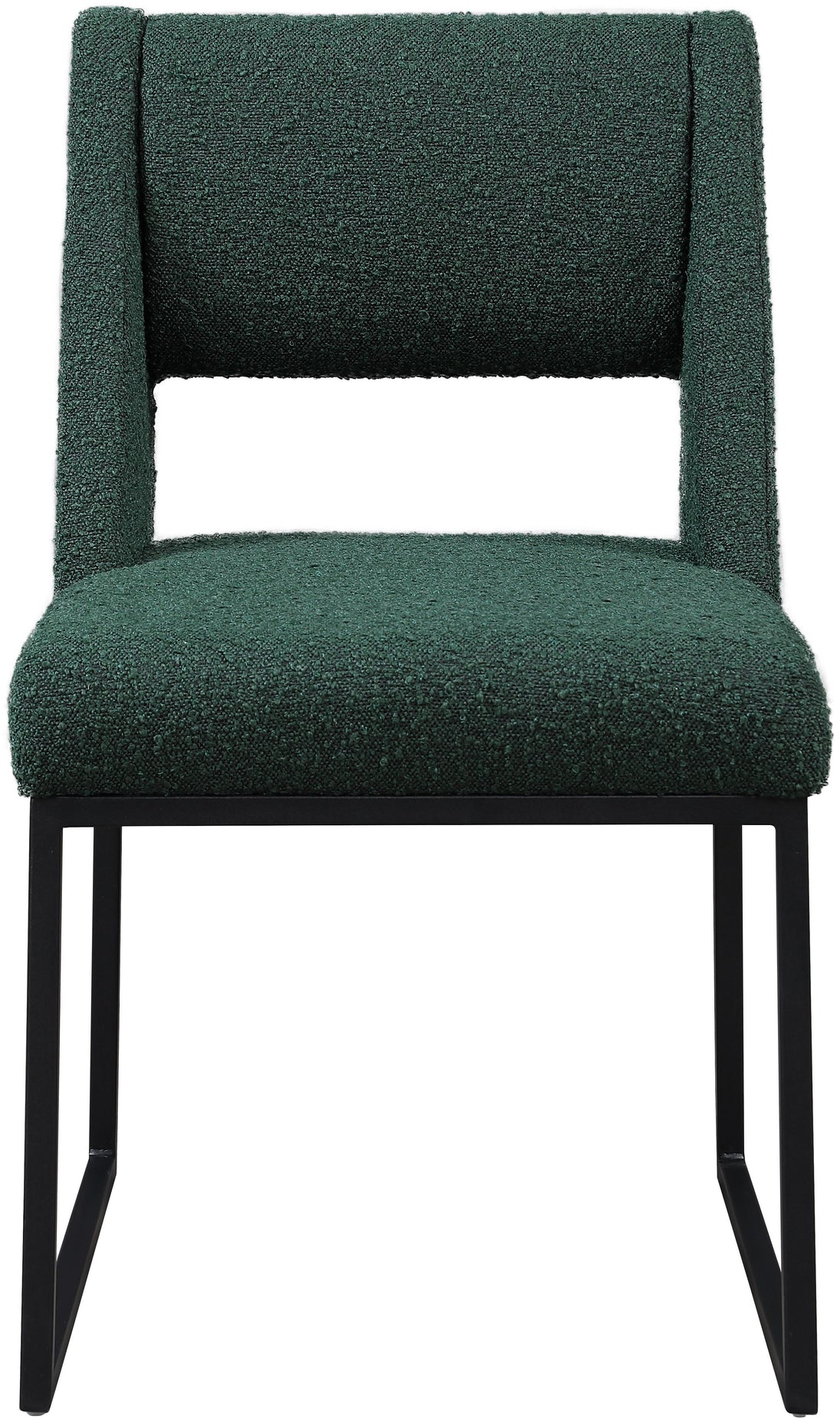 Give your dining area a contemporary makeover with this Jayce cream boucle fabric dining chair. Featuring a matte black iron base and rich cream boucle fabric, this dining chair is both sturdy and cozy. Its contemporary design is ideal for any modern home, and its neutral cream color matches any color dining table. Its plush boucle upholstery provides you with a comfortable pace to sit, and its open rectangular back is stylish while adding spine support.