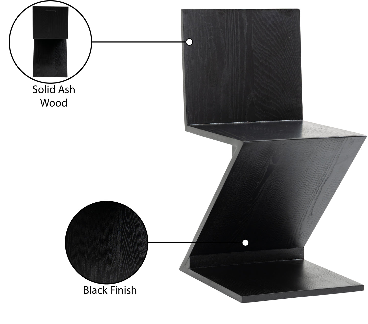 Create an up-to-the-minute feel in your dining room space with this Magani dining chair. Meticulously crafted from solid ash wood for stability, resilience, and long-lasting beauty, this chair has a fun mid-century design that's artful and exciting for guests at mealtime. The black finish adds to the overall modish look of this handsome chair. Pair it with the tale of your choice for a contemporary look that wows from every angle.