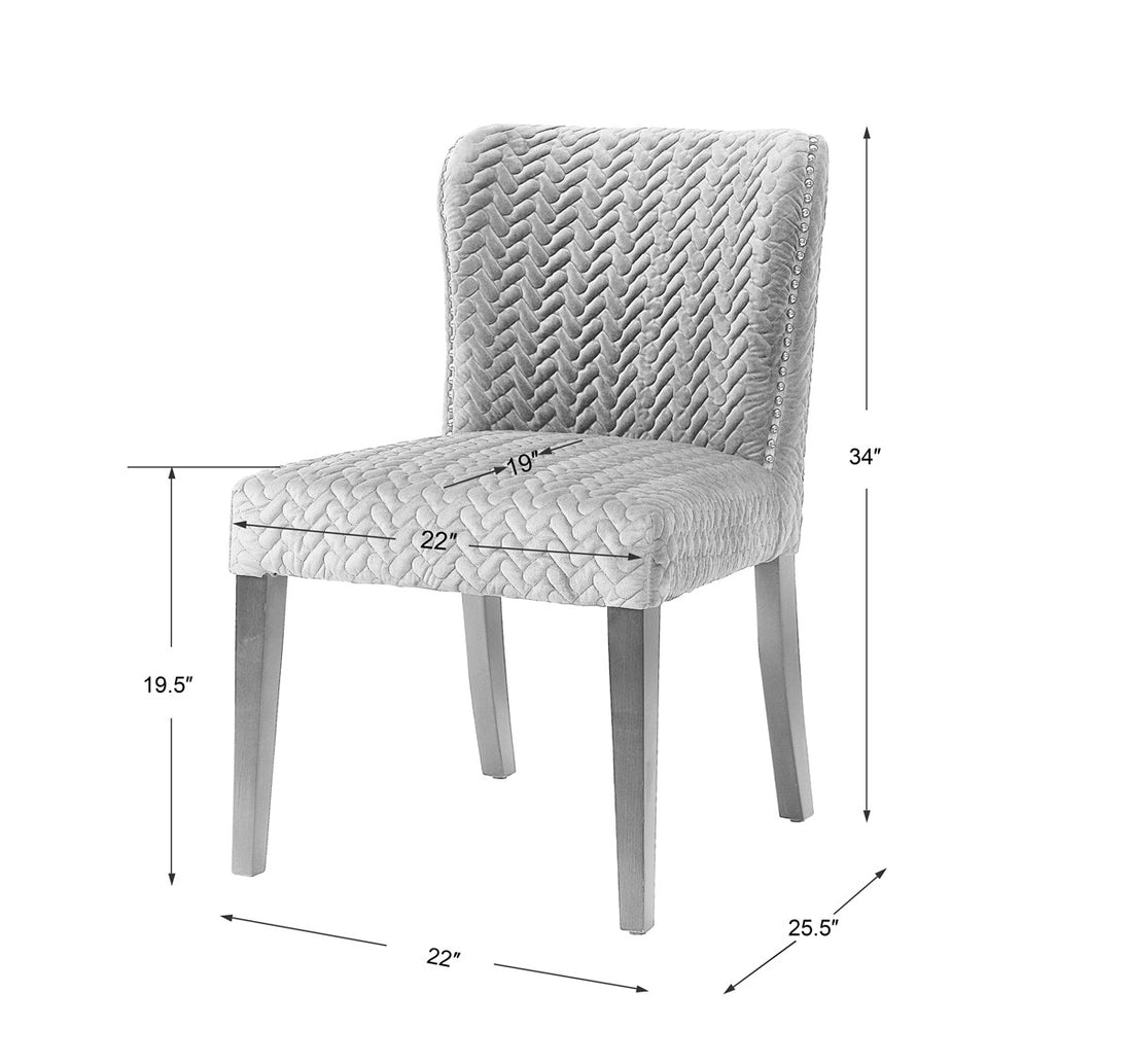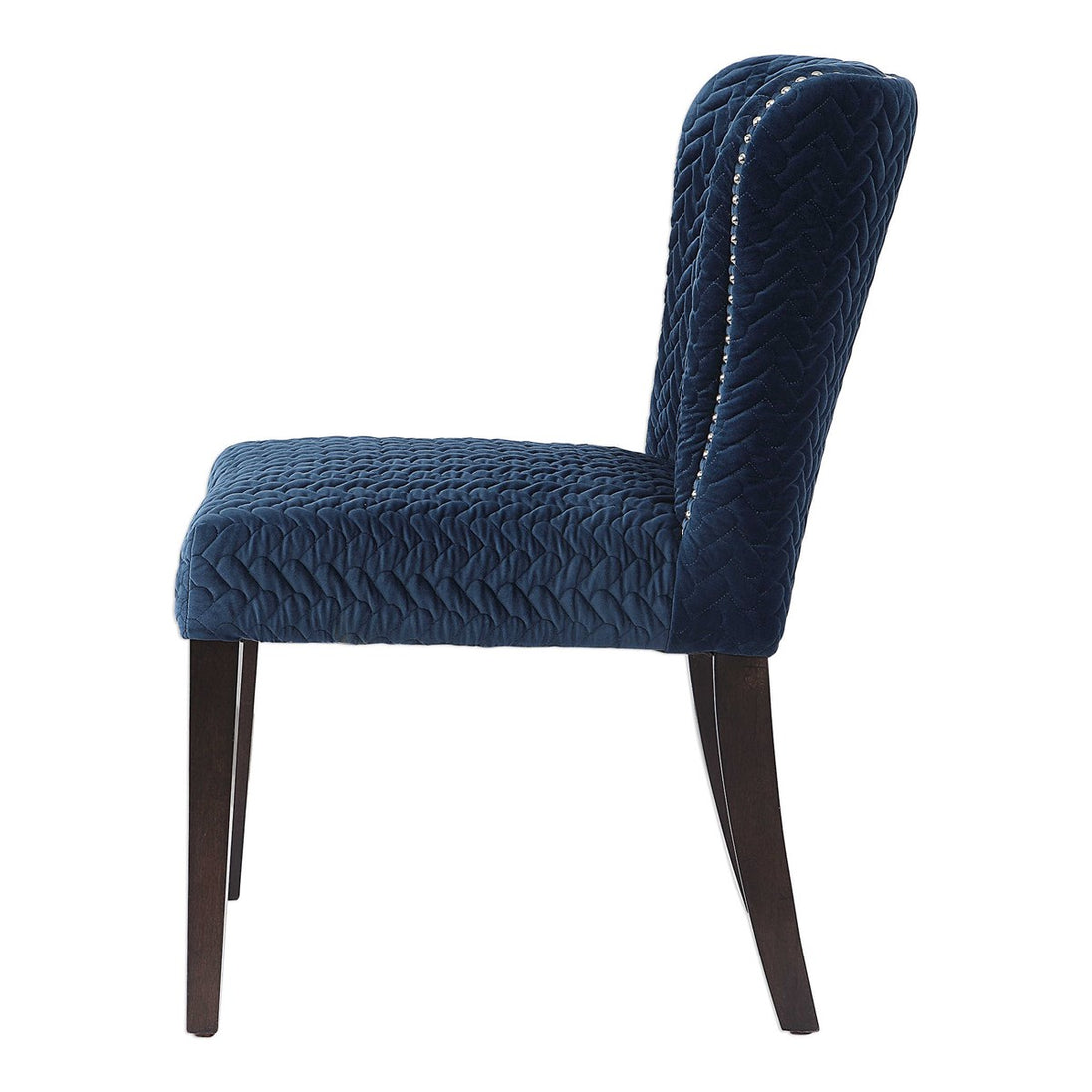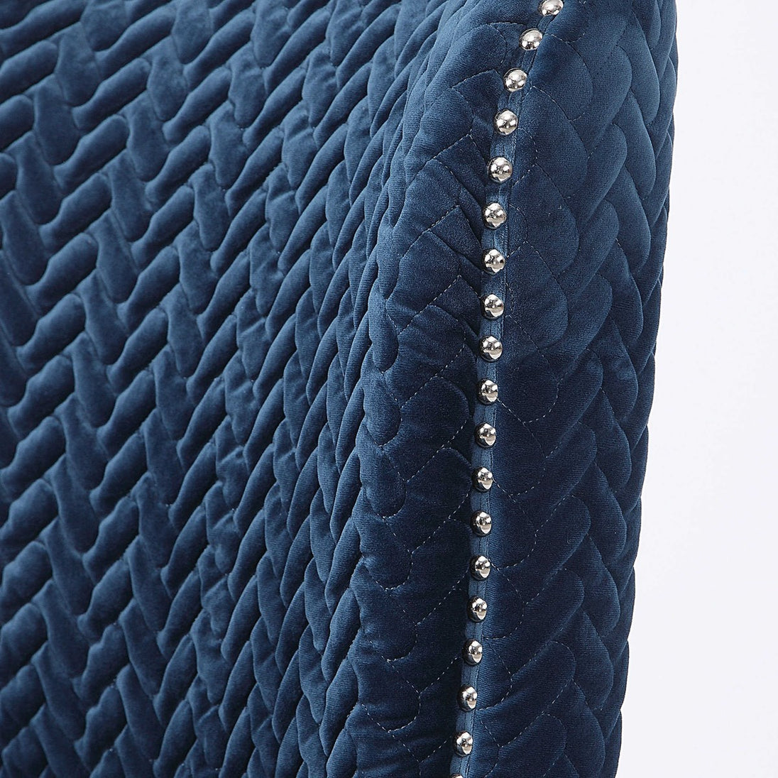 A Statement Accent Upholstered In A Rich Ink Blue Polyester Velvet Featuring A Herringbone Embroidered Texture, Complete With Polished Nickel Nail Head Trim. Birch Legs Stained In A Deep Walnut. Seat Height Is 21". Sold As A Set Of 2.Product Features