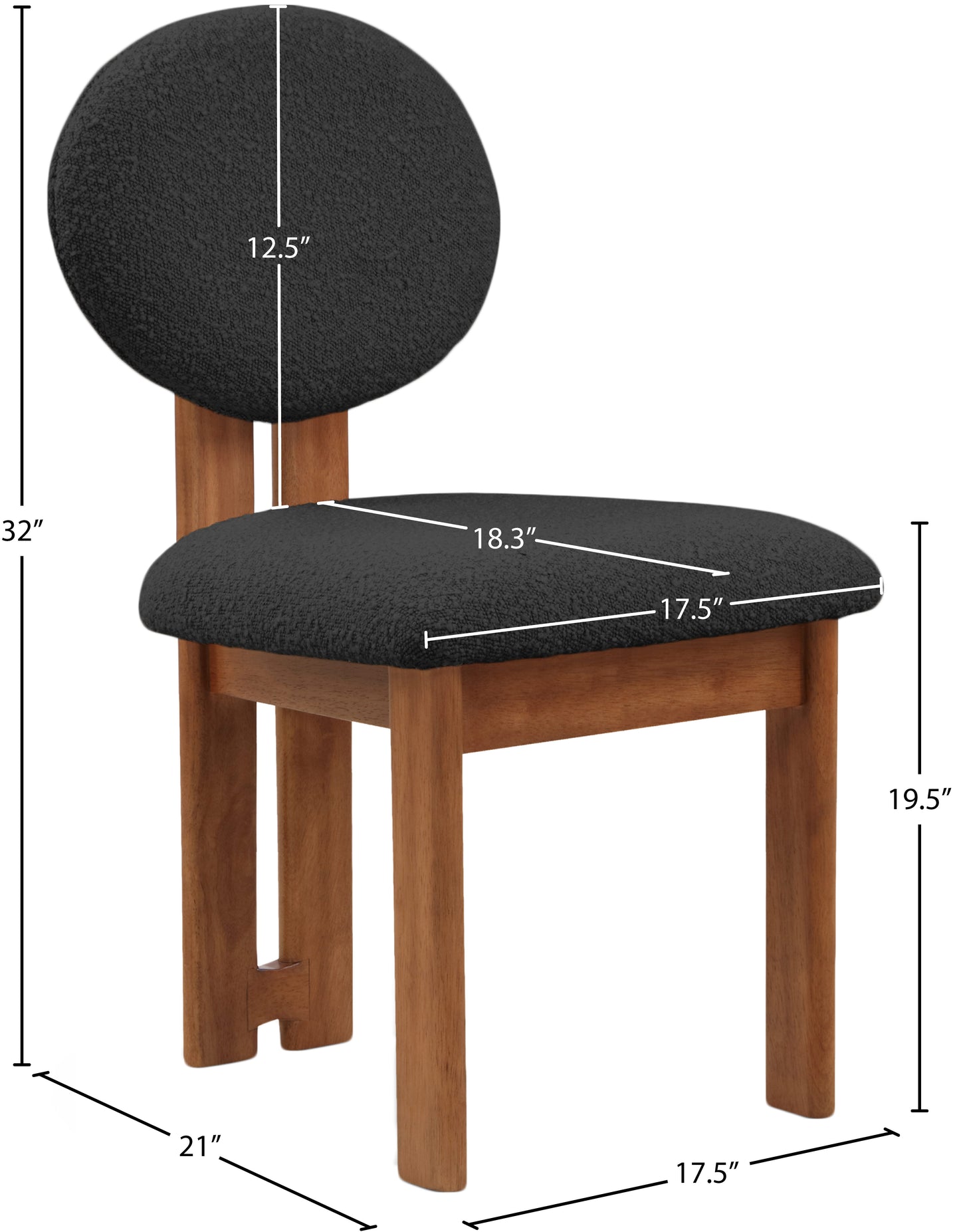 Elevate the look of your dining room with this Napa boucle fabric dining chair. This lovely chair features rich black boucle fabric upholstery on the seat and back, so guests feel super comfortable from the minute they sit down and throughout the whole meal. Rubberwood and other wood products make up the frame's construction, giving the chair a sturdy countenance to withstand long-term use in your busy dining room or eat-in kitchen area.
