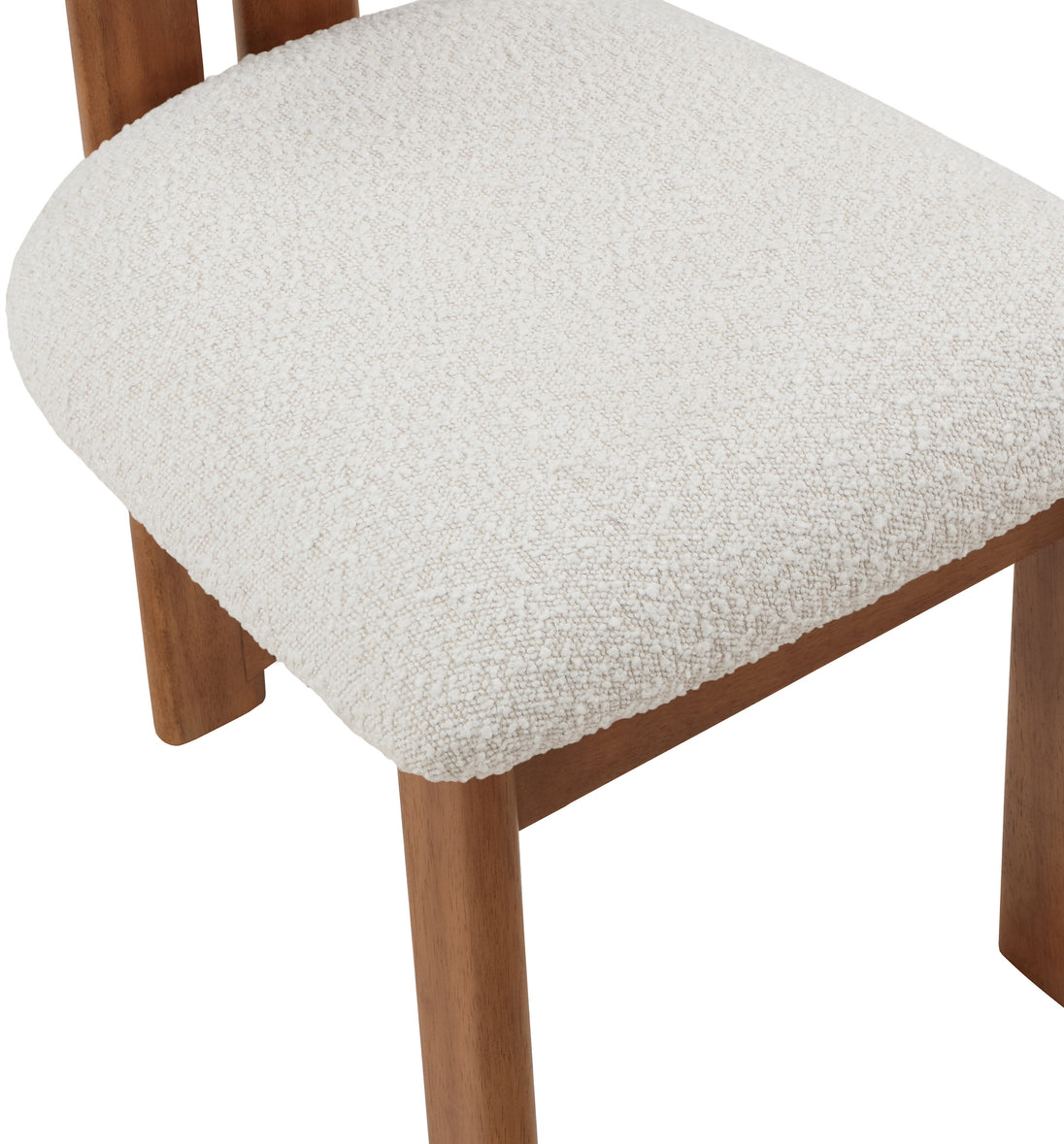- Material: Boucle Fabric / Rubberwood / Engineered Wood