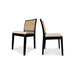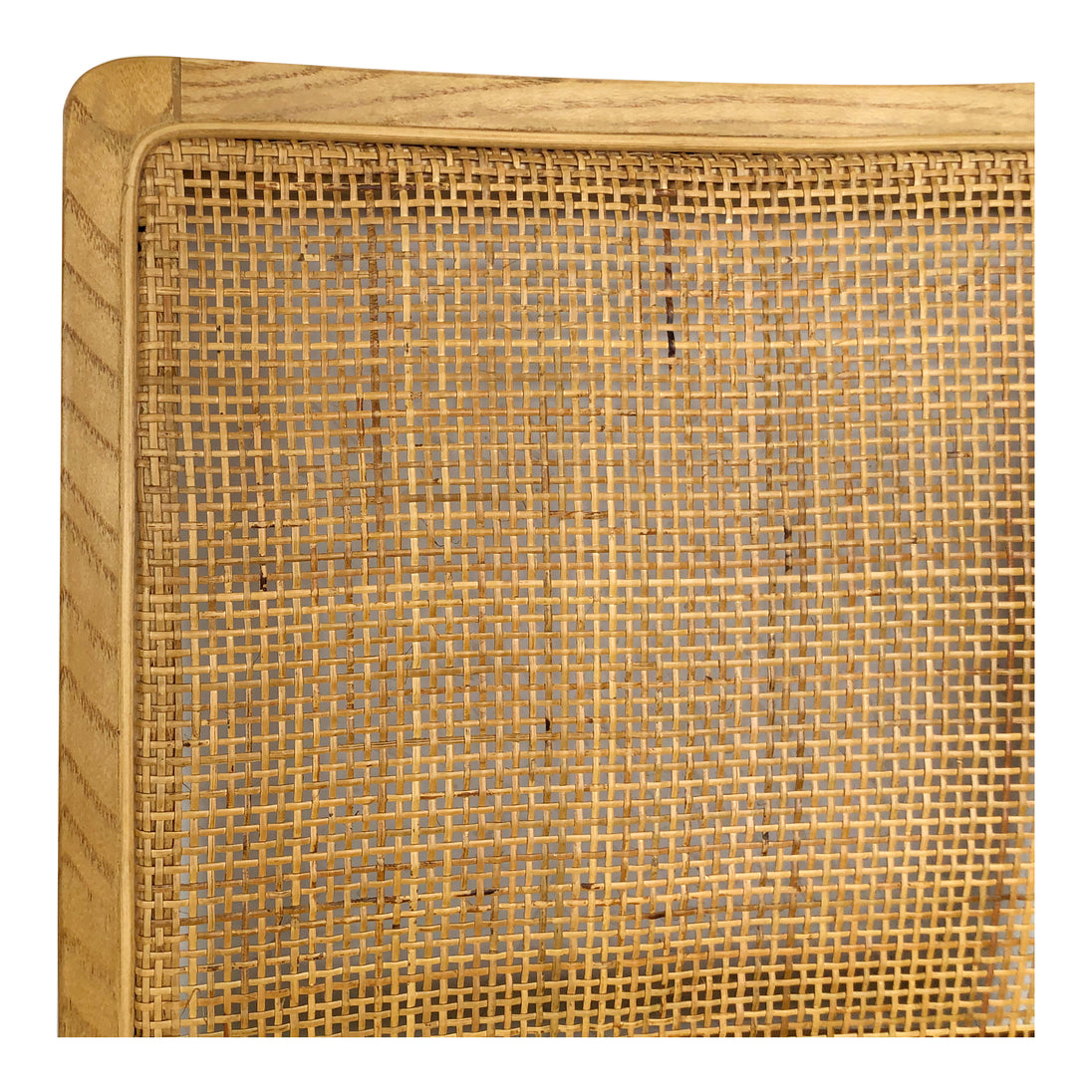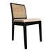 The Orville dining chair harmoniously blends natural rattan, black-finished solid elm, and cushioned upholstery into an effortlessly elegant addition that emanates warmth and balance, perfect for the dining room, kitchen, or any living space. Tasteful and time-tested, rattan naturally nestles into many settings with a softened contemporary aesthetic that offers comfort, style, and substance.