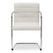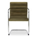 - Cantilever stainless steel frame contrasts soft, channeled upholstery