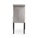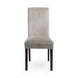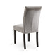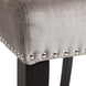 - High back grey velvet dining chair is accentuated with double row nail heads.