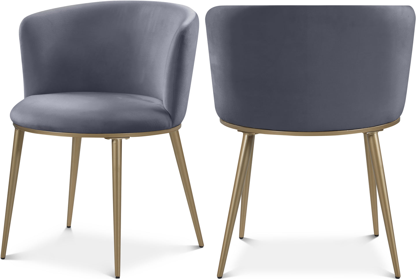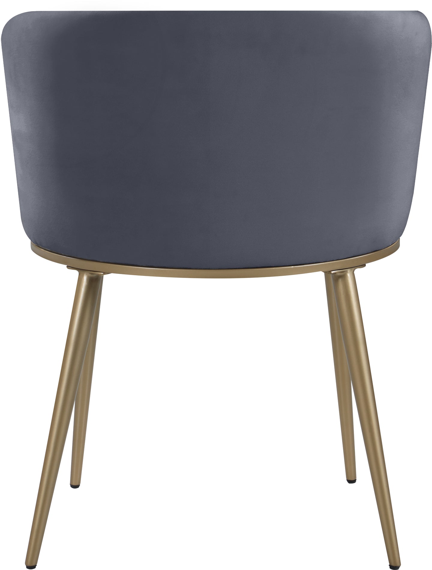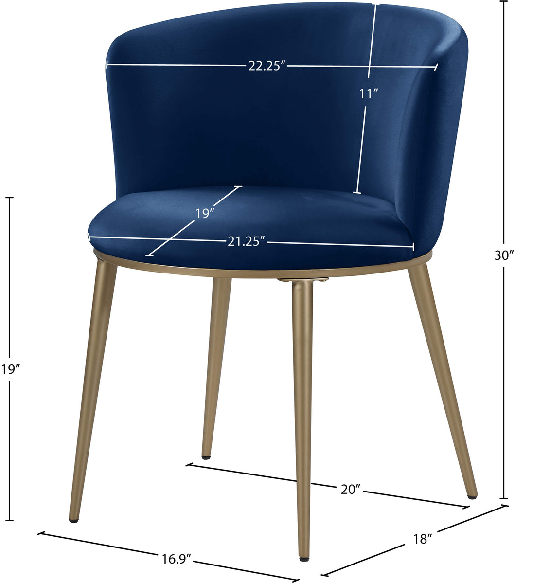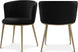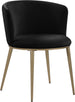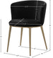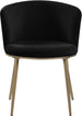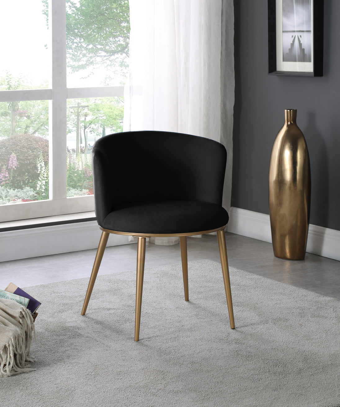 Enhance your decor with the Skylar black velvet dining chair, due to its petite silhouette and artistic style. A soft round cushion and gently curving cushioned back give this chair an ageless quality that belies its contemporary design. A brushed gold base is supported by four tapering gold legs, and it weighs only 11 pounds overall. Easily paired with any of several available tables, this chair is equally well-suited to use in a conversation grouping.