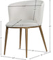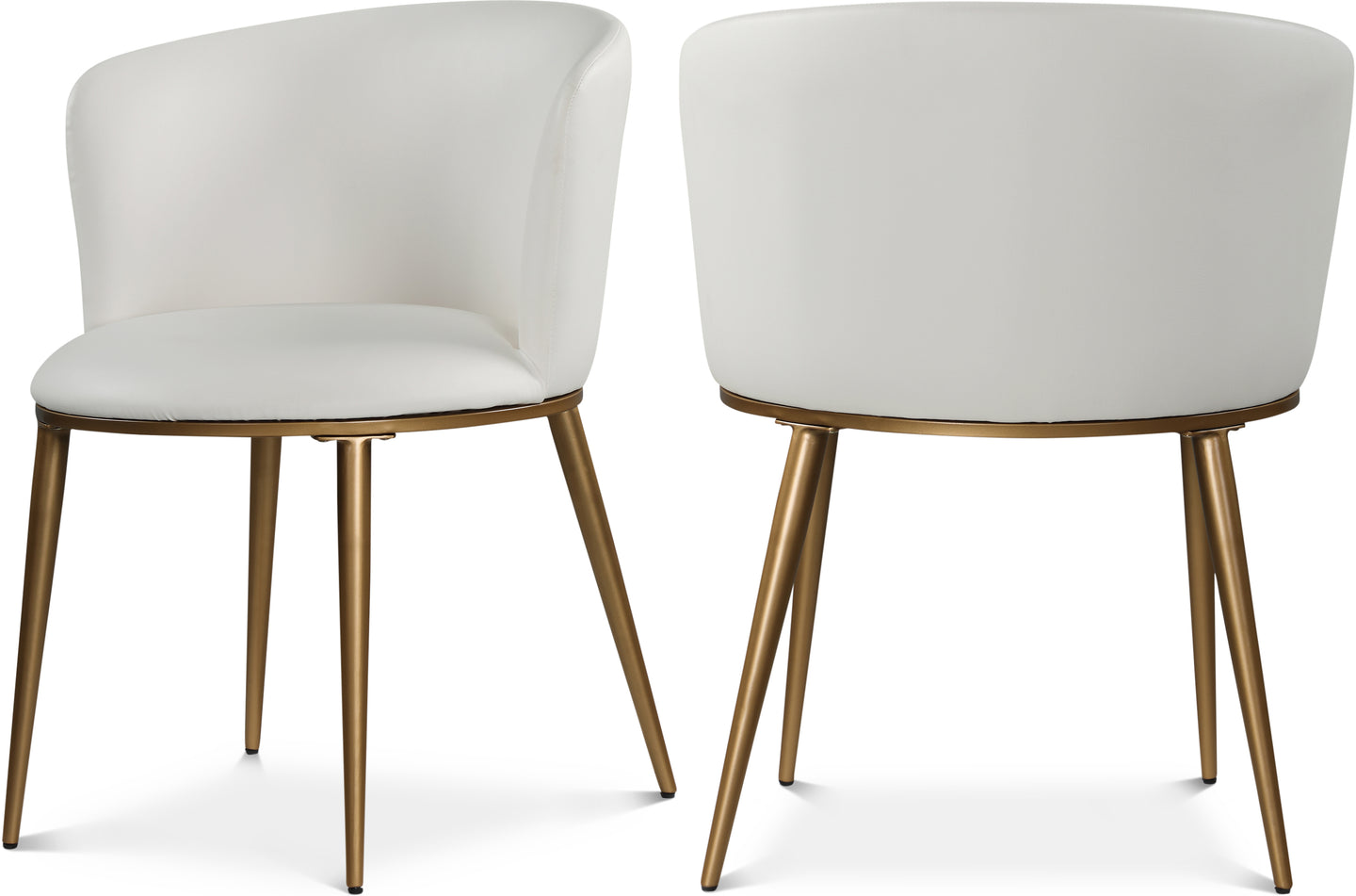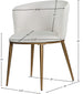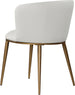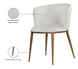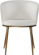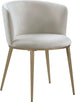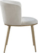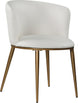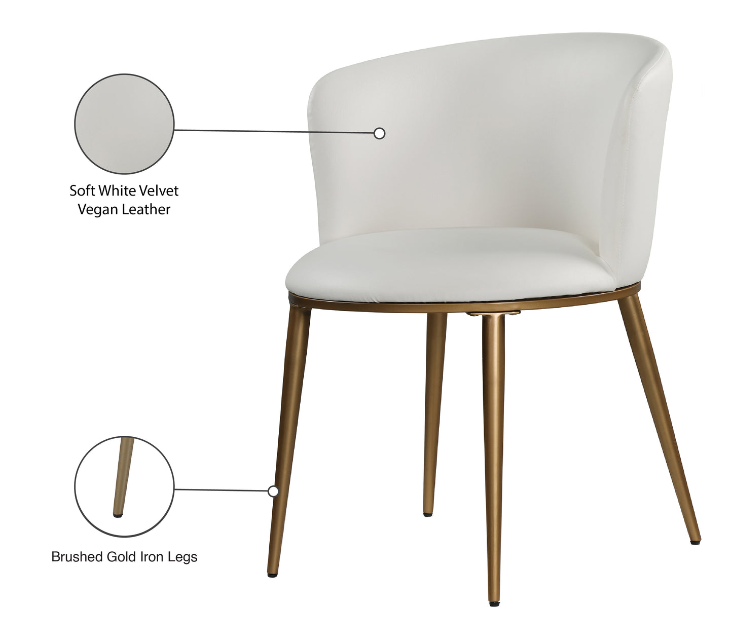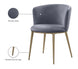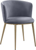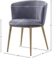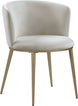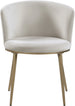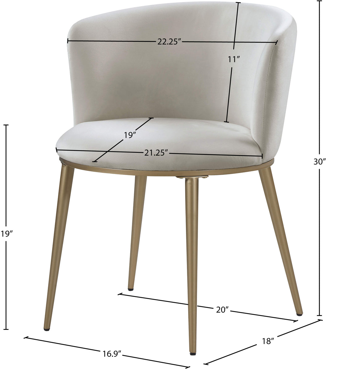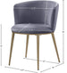 Enhance your decor with the Skylar black velvet dining chair, due to its petite silhouette and artistic style. A soft round cushion and gently curving cushioned back give this chair an ageless quality that belies its contemporary design. A brushed gold base is supported by four tapering gold legs, and it weighs only 11 pounds overall. Easily paired with any of several available tables, this chair is equally well-suited to use in a conversation grouping.