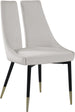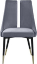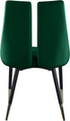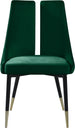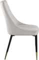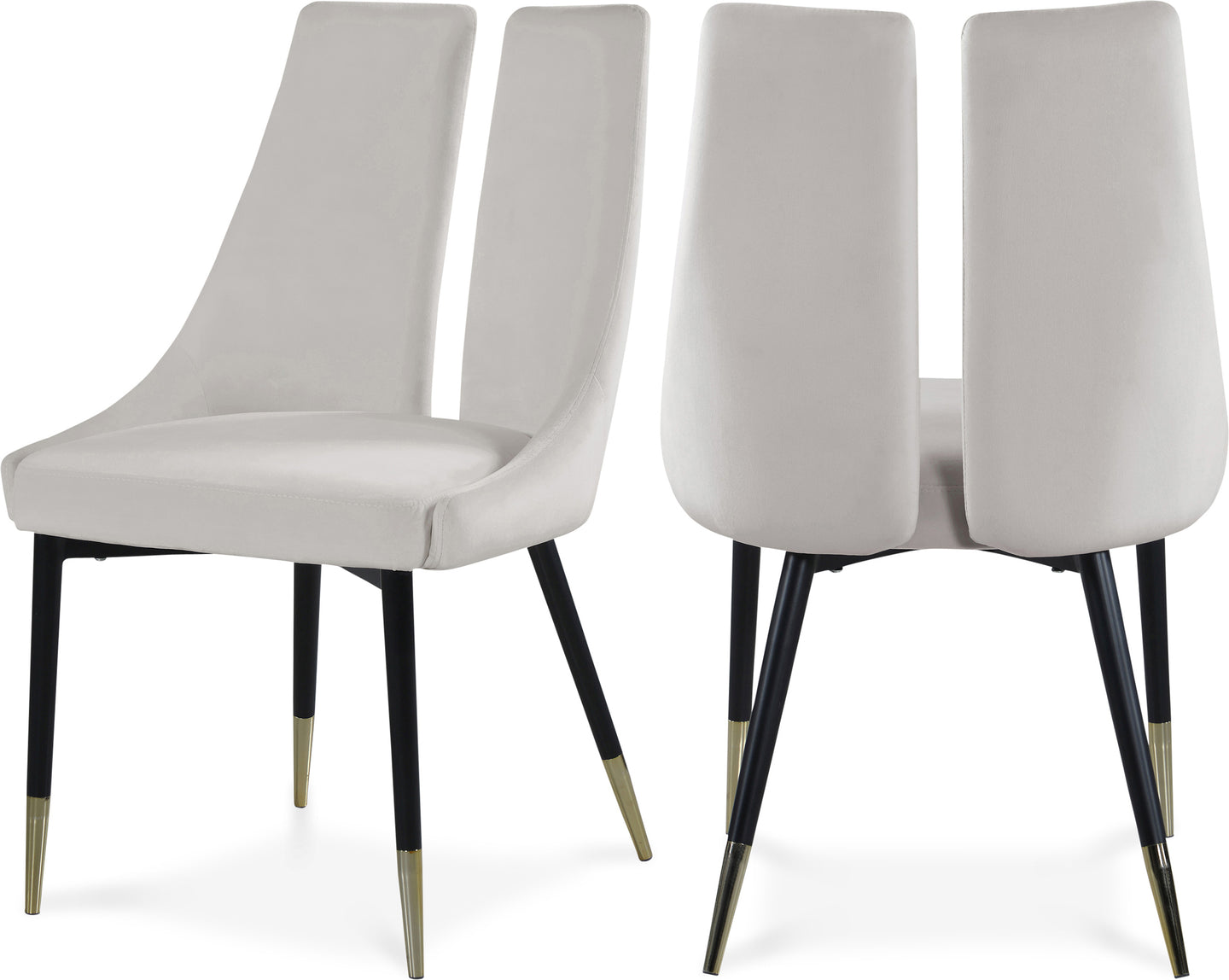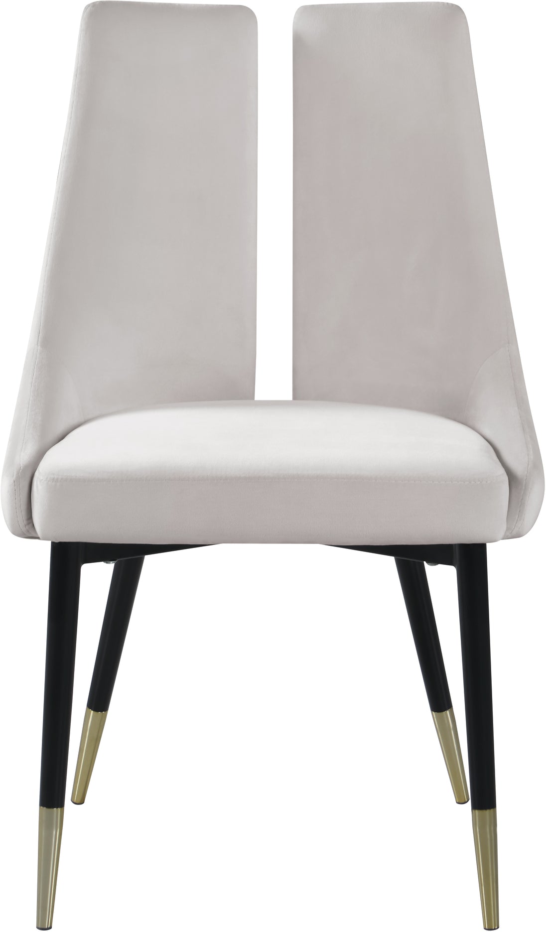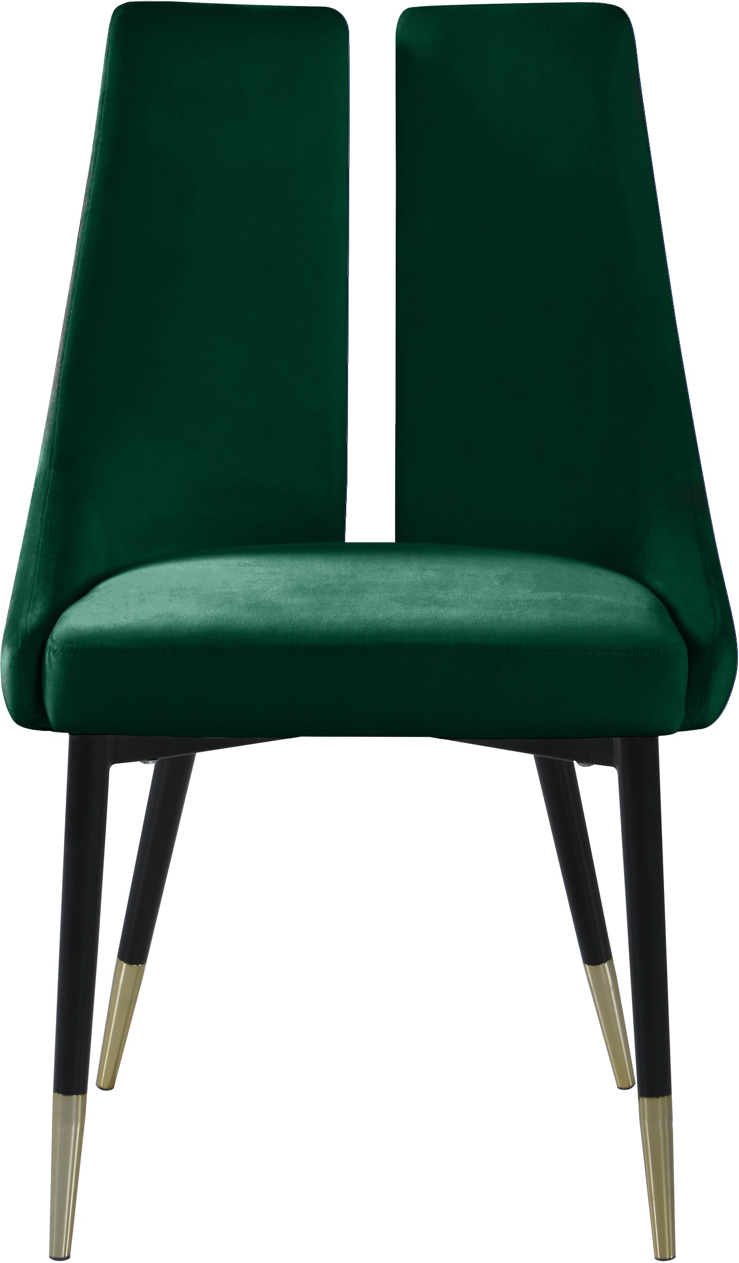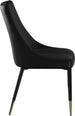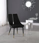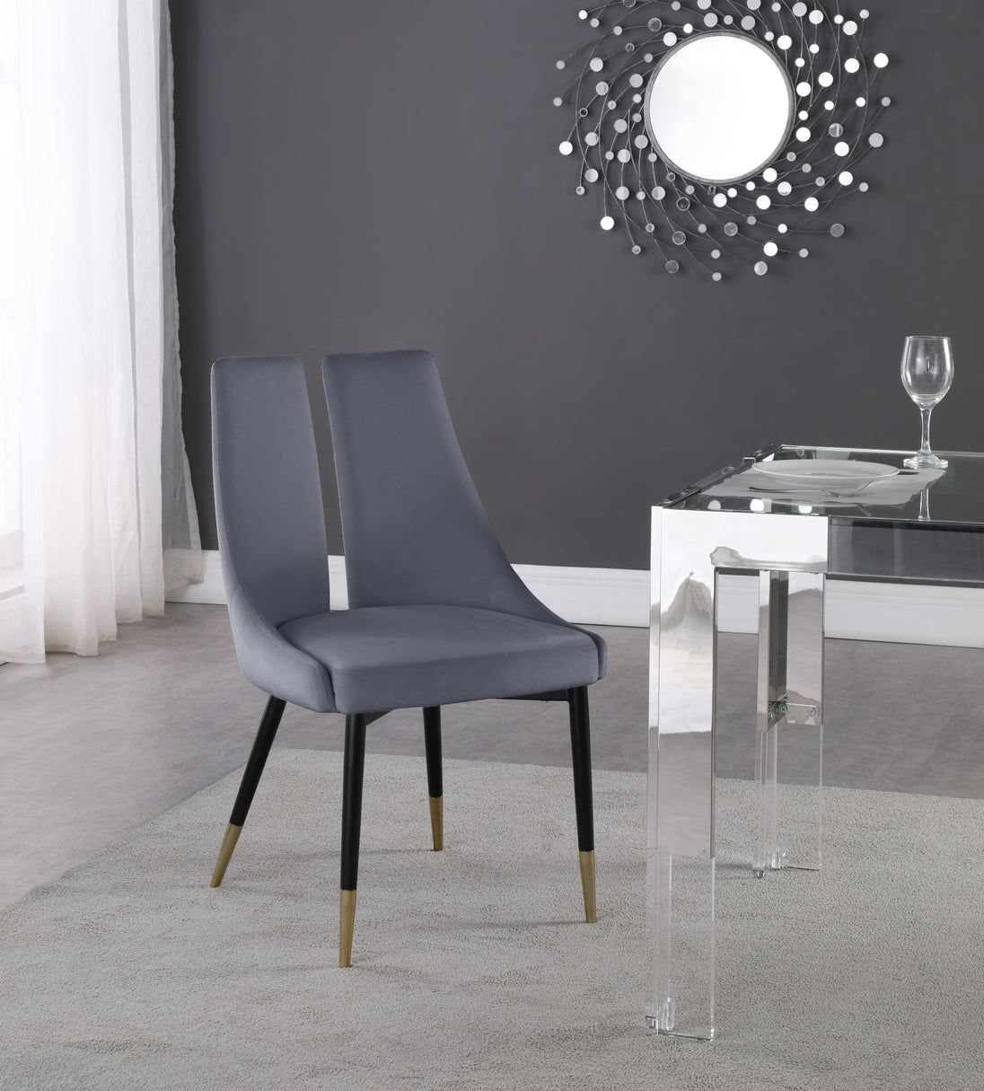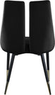 It doesn't get more modish than this! This Sleek velvet dining chair is the bees knees when it comes to contemporary design with its sculptural back and its clean lines. The chair is covered in soft black velvet upholstery material for a look that's modern and sophisticated. Matte black iron legs with gold tips gives the chair a hint of elegance.