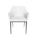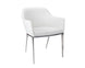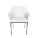 This comfortable dining armchair is a mix of modern, urban design, and can be used as either a dining or occasional chair. Stocked in white and grey faux leather with polished steel legs. Handle With Care: This design has been crafted with faux leather. Faux leather is manufactured to reflect the natural characteristics of leather; as such, colour variations, markings, wrinkles, grooves, and light scratches are appreciated characteristics. No two pieces will be alike. Visit our Product Care page for more information on how to ensure the lasting beauty of this piece.