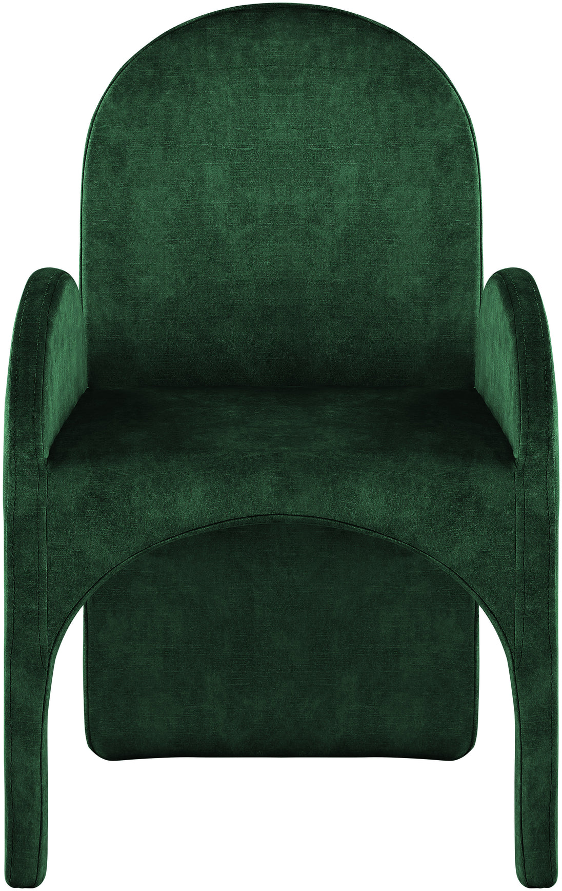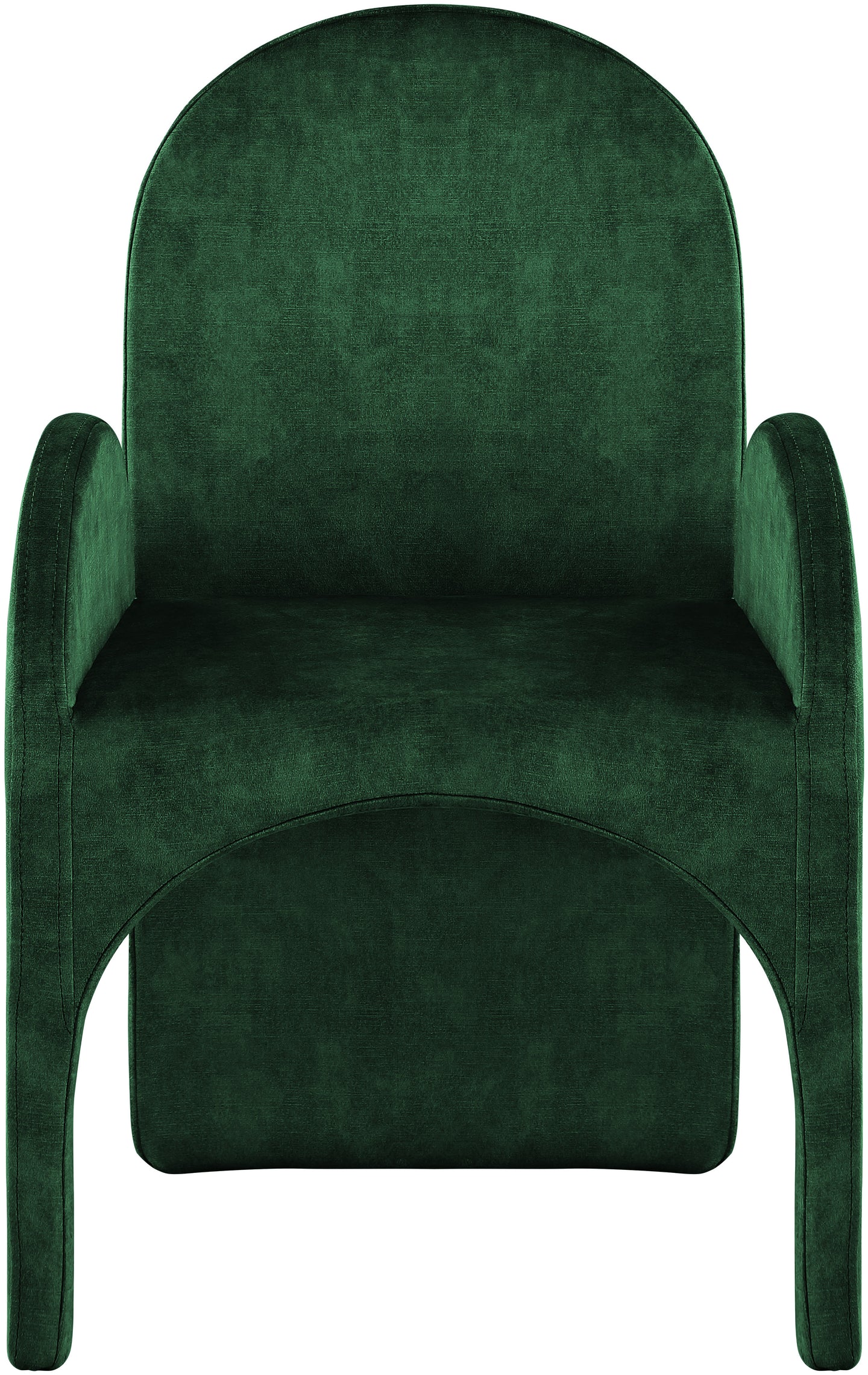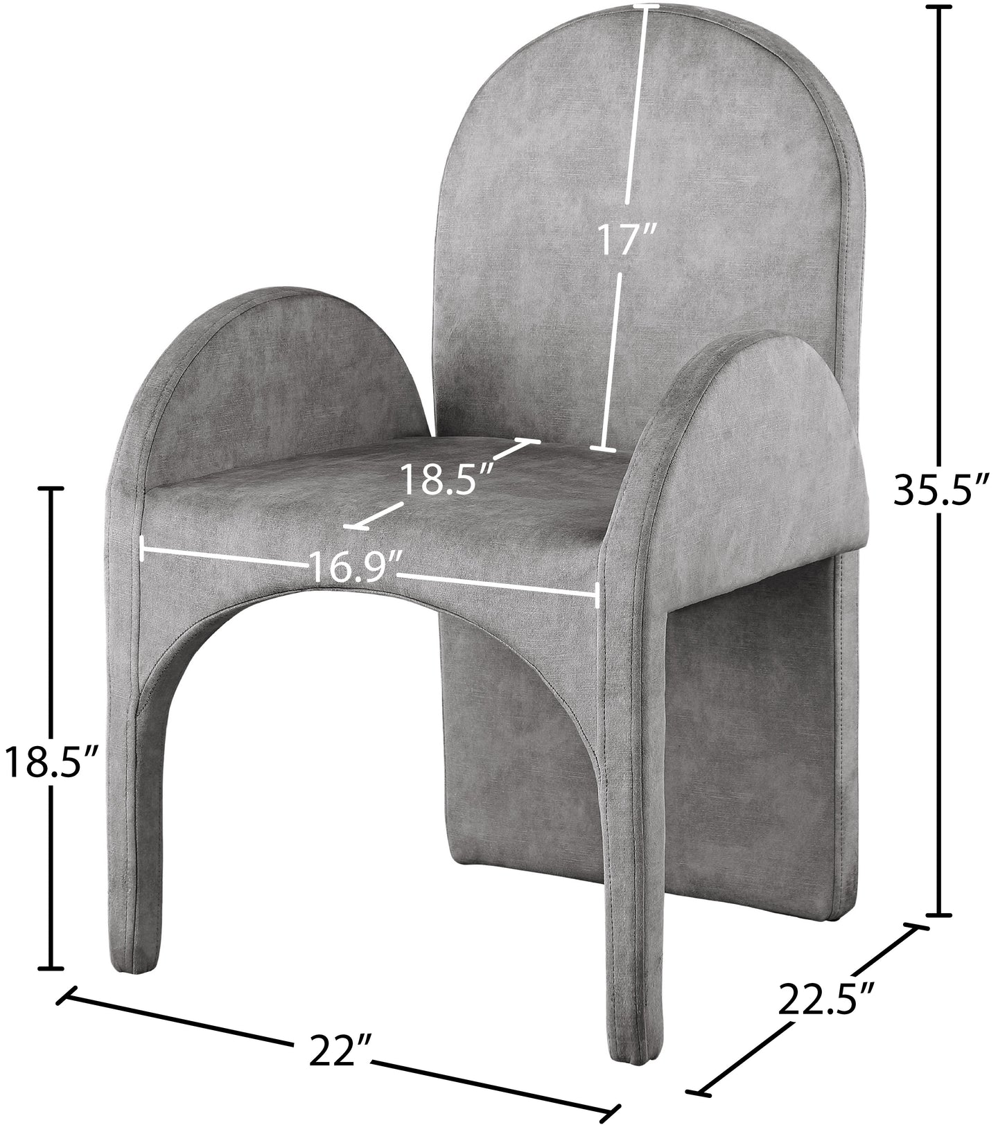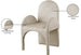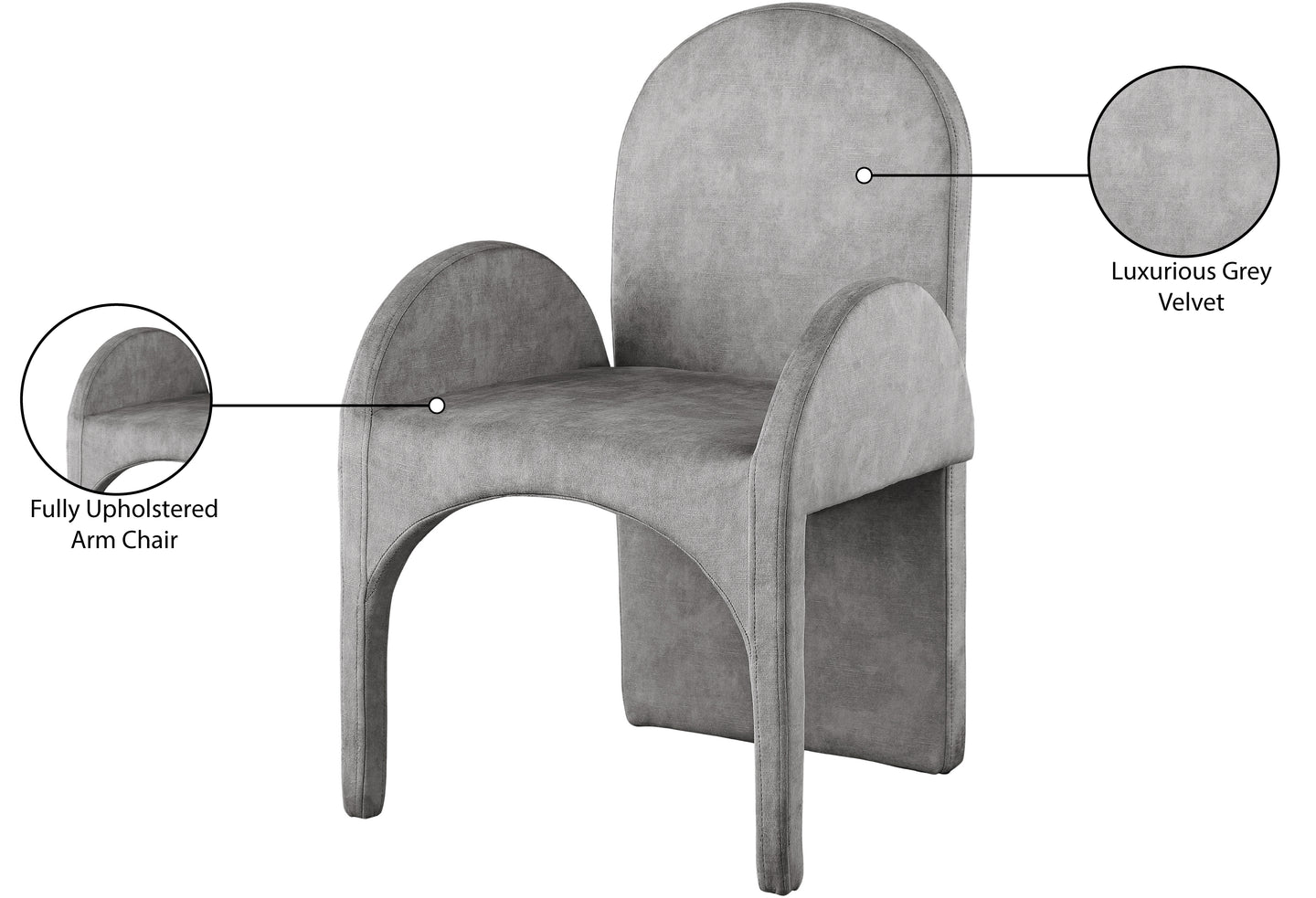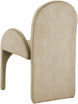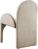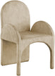 Turn your dining room into a regal haven with this Summer beige velvet dining arm chair. Featuring a luxurious beige velvet upholstery, this fully upholstered armchair offers comfort and support while you enjoy your meals. Its steel frame ensures durability, so you can enjoy the chair for years to come. Its arched, contemporary design is both unique and fashionable, providing your dinner guests with a conversation piece as well as a comfortable place to sit.
