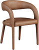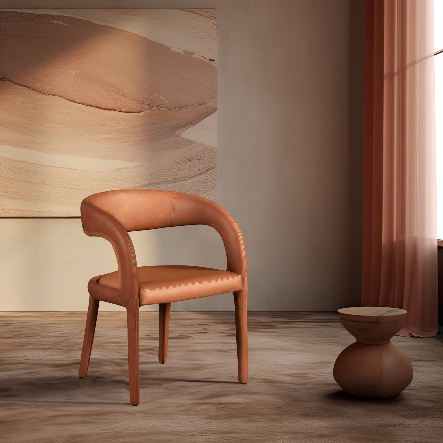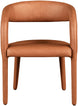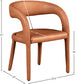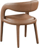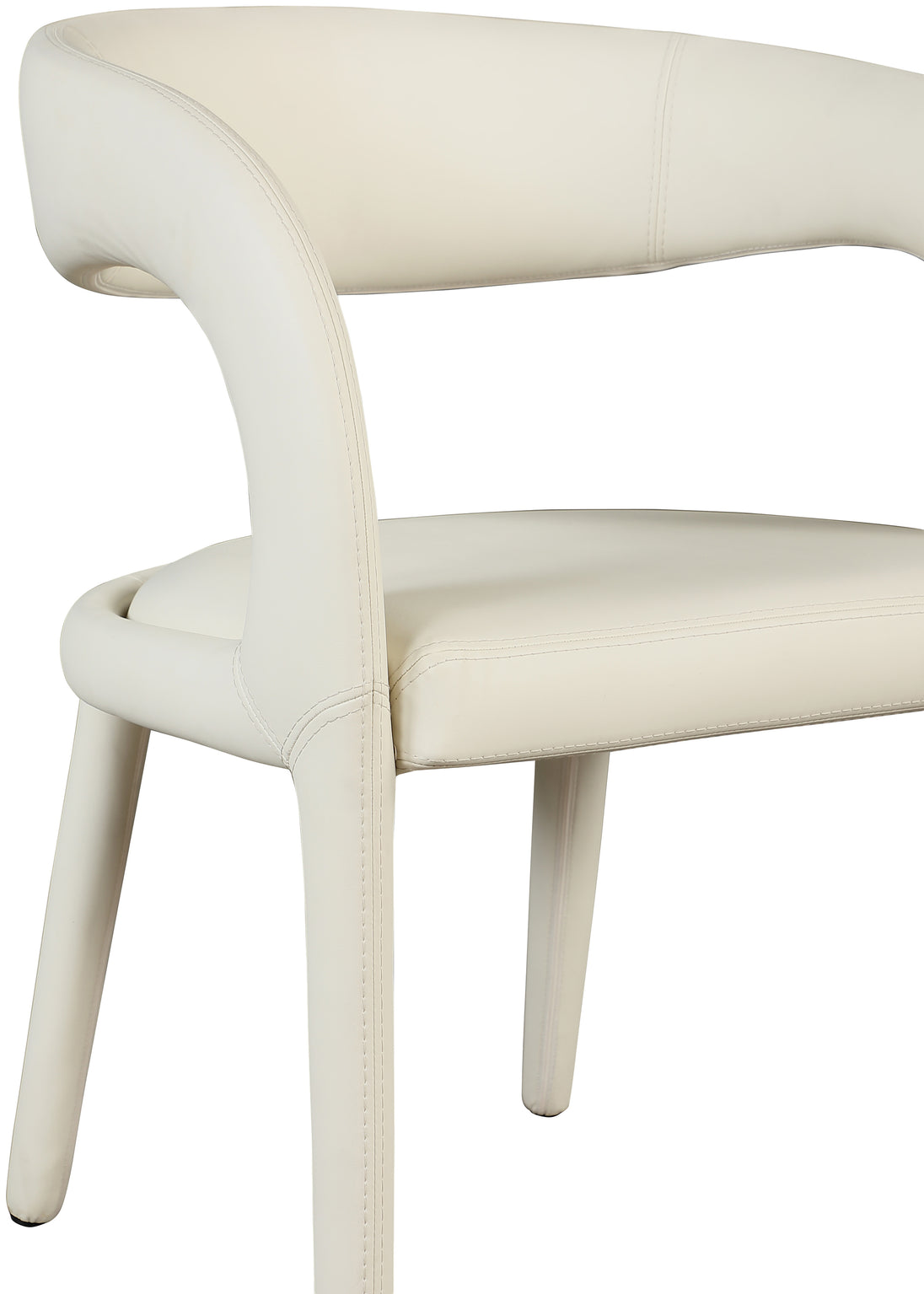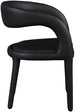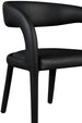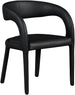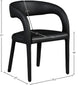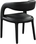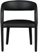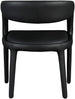 Modernize your home with this Sylvester black vegan leather dining chair. Featuring soft and durable black vegan leather upholstery, this chair offers you a comfortable and long-lasting place to sit while you dine. It's fully upholstered, giving it a solid look that is ideal for any contemporary home. Its rounded back provides upper back support, while its semi-open design makes a fashionable decorative statement that is sure to catch the eyes of anyone who joins you for dinner.