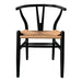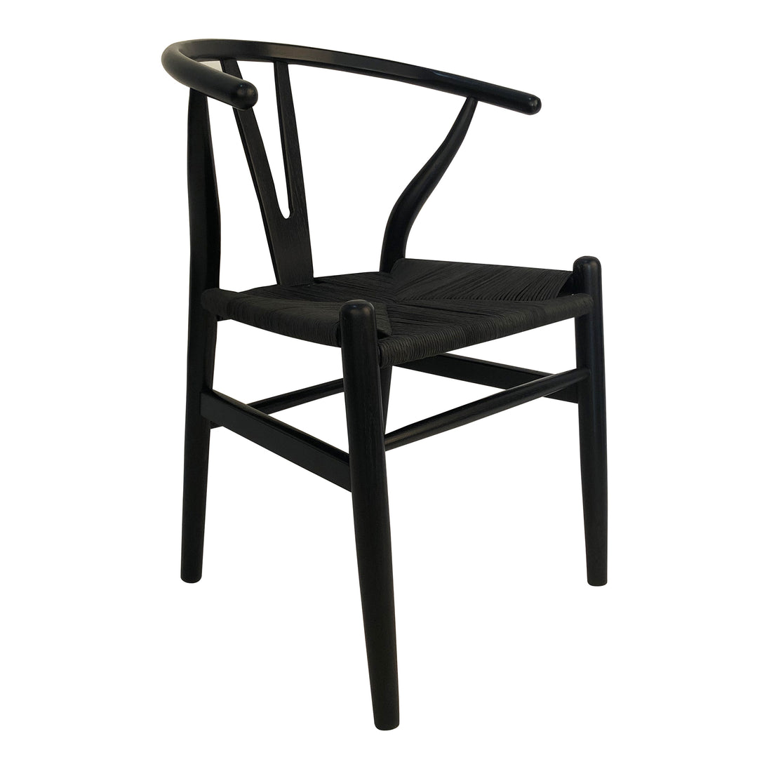 The Ventana dining chair flaunts sweet juxtaposition with its simple, sturdy construction and its woven fabric seat. Place in a minimalist space or place in a busy home for a laidback feel. This black seat is made from solid elm wood for a lifelong construction.