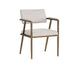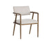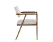 Industrial meets transitional elegance in this armchair. Reminiscent of mid-century modern styling with a rustic bronze steel frame and beige linen fabric on the seat and seat back. Can be used in both dining and living spaces.