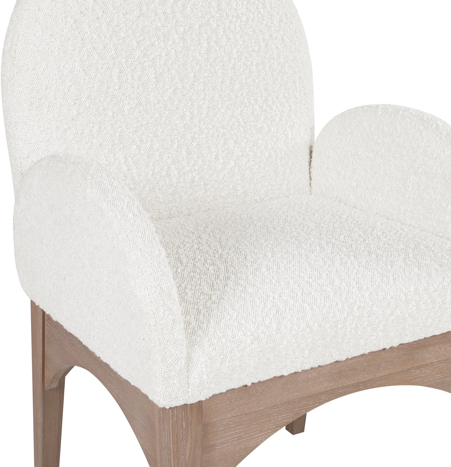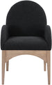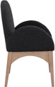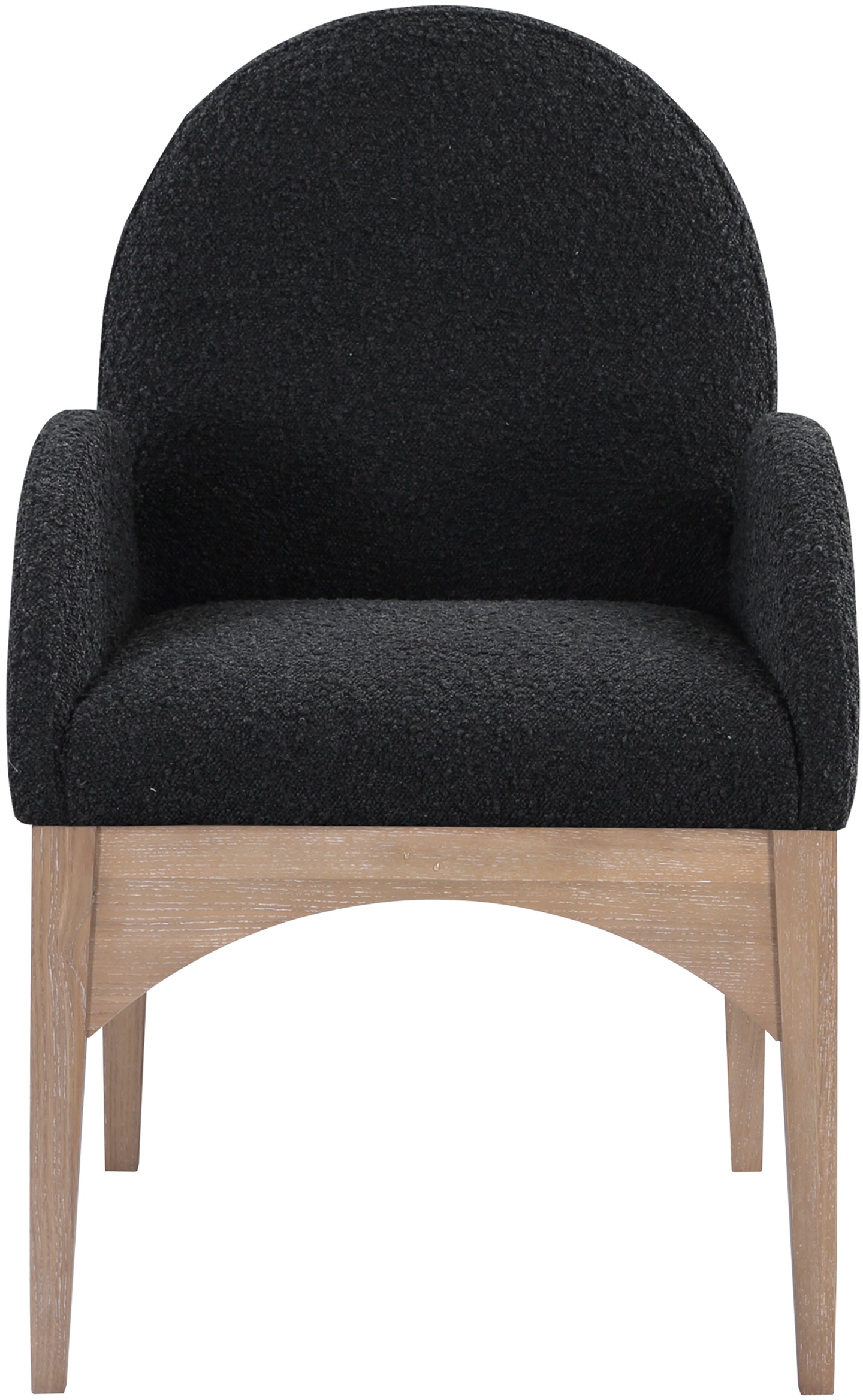 The Waldorf Boucle Fabric Dining Arm Chair exudes elegance and comfort. Crafted with solid ash wood, this dining chair boasts a sturdy and durable construction. The natural finished legs provide a warm and welcoming touch to the overall design. The plush black boucle fabric on the seat and backrest of the chair offers a soft and cozy seating experience, making it an ideal choice for long dinner conversations with family and friends.