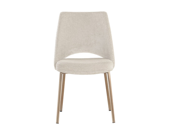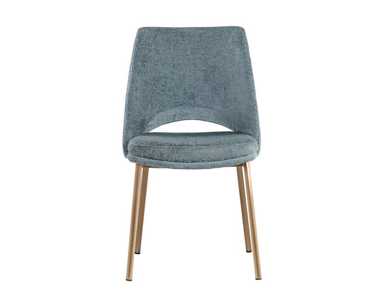 Dashing with contemporary style, this dining chair is designed with a refined touch. Upholstered in bergen french blue and taupe fabrics with a stylish cutout on the seatback. Completed with an antique brass stainless steel base....Sale price $628.00Regular price $837.00Sale price $628.00Regular price $837.00 -