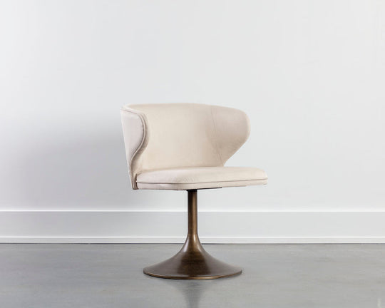 Create a captivating dining space with this eye-catching swivel dining chair that has a contemporary flair. Stocked in casablanca cloud performance fabric and completed with a round, antique brass stainless steel base. Also available in meg...Sale price $1,123.00Regular price $1,497.00Sale price $1,123.00Regular price $1,497.00