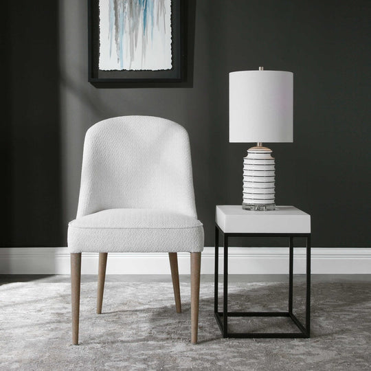 Perfect for modern dining, this armless chair features a casual off-white textured fabric with welted trim and solid wood legs finished in light walnut, with added performance treatment to resist soiling and stains. Seat height is...Sale price $929.00Regular price $1,249.00Sale price $929.00Regular price $1,249.00