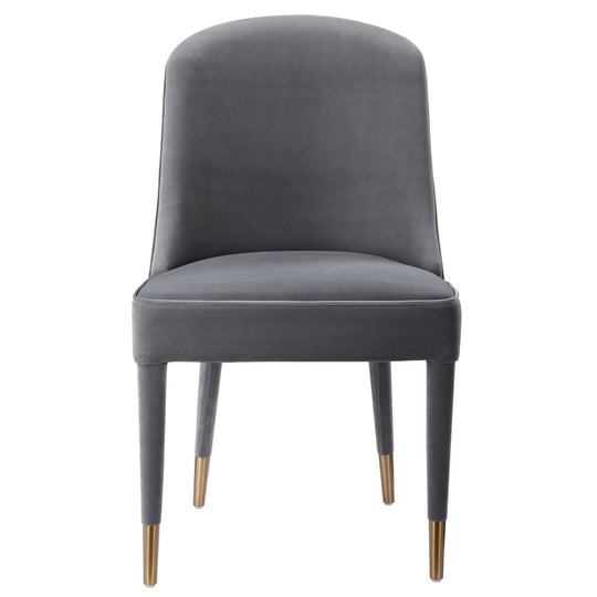 Perfect For Modern Dining, This Armless Chair Features Sleek Lines Covered In A Slate Blue Velvet With Welted Trim And Accented With Brushed Brass Ferrules. Sold As A Set Of 2. Seat Height Is 19".Product Features...Sale price $929.00Regular price $1,249.00Sale price $929.00Regular price $1,249.00 -