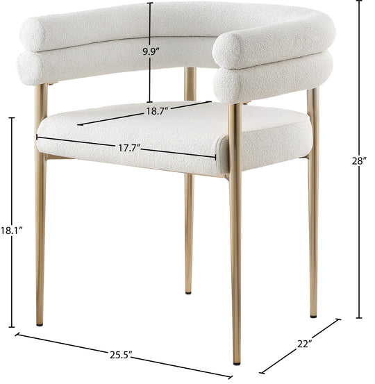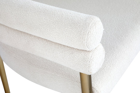 Bring boldness to your dining area with this Brielle dining chair from Meridian Furniture. Its curved, brushed gold metal frame provides support for its rich black boucle seat and backrest, giving it contrasting colors as well...Sale price $405.00Regular price $540.00Sale price $405.00Regular price $540.00 -