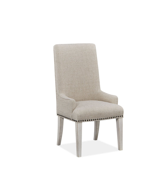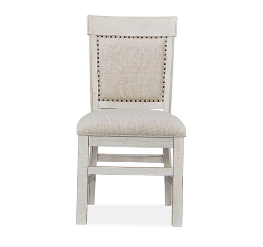 Bronwyn - Upholstered Host Side Chair. Traditional styling featuring solid pine wood in an Alabaster finish. Fully upholstered seat and back. Squared straight legs. Nailhead trim on upholstery.Product Features Traditional Styling Featuring Solid Pine Wood In...Sale price $829.00Regular price $1,099.00Sale price $829.00Regular price $1,099.00 -