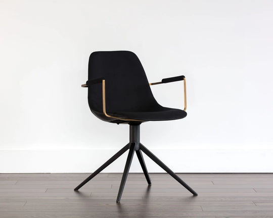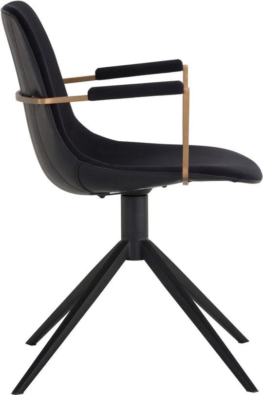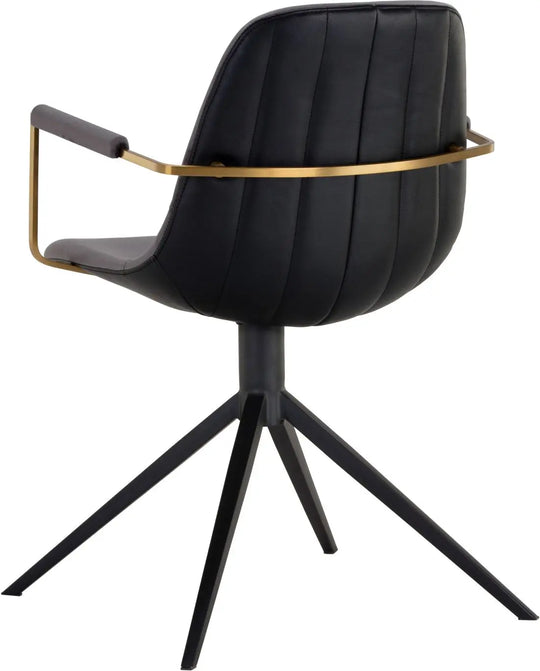 This swivel dining chair from is where urban cool meets contemporary elegance. Designed with an abbington black fabric seat and a channel tufted exterior in bravo black faux leather. Brushed gold finished arms and black iron...Sale price From $449.00Regular price $899.00Sale price From $449.00Regular price $899.00