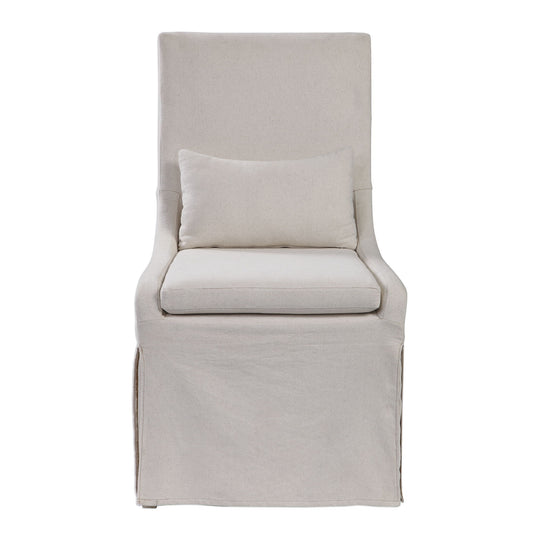 Simplistic In Form, This Casually Sophisticated Armless Chair Features A Tailored Off-white Linen Blend Slipcover With A Plush Cushion Seat And Kidney Pillow For Added Comfort. Seat Height Is 20". Dry Clean Only.Product Features Uttermost's Furniture...Sale price $839.00Regular price $1,199.00Sale price $839.00Regular price $1,199.00 -