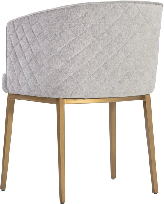 Feminine flair comes to life in this modern dining chair. Stocked in our soft blush purple, blush grey and forest green fabric with elegant diamond stitching on the exterior seatback. An antique brass steel frame completes...Sale price From $739.00Regular price $1,299.00Sale price From $739.00Regular price $1,299.00 -