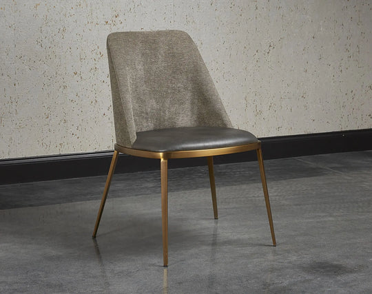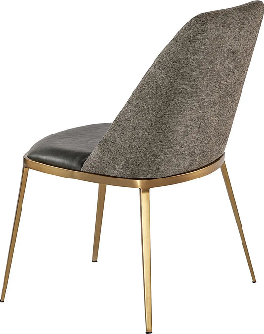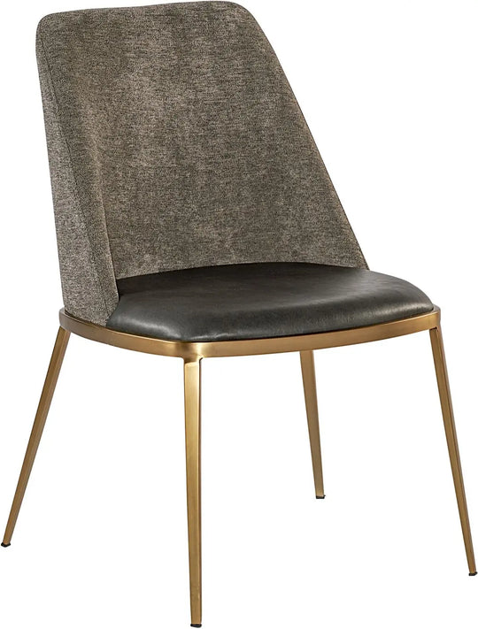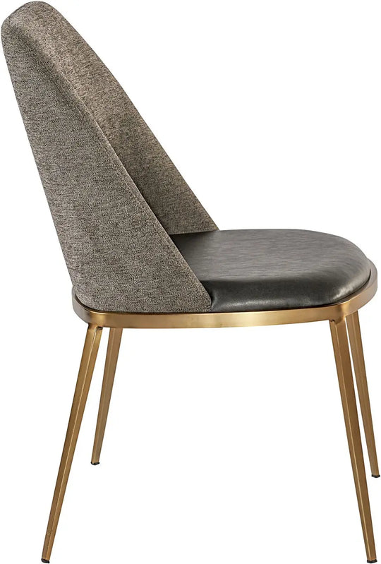 A combination of mixed materials creates a truly luxurious dining chair. The contemporary silhouette is finished with a bravo portabella faux leather seat, sparrow grey fabric seatback and sleek brushed gold steel legs. An eye-catching piece...Sale price $988.00Regular price $1,317.00Sale price $988.00Regular price $1,317.00 -