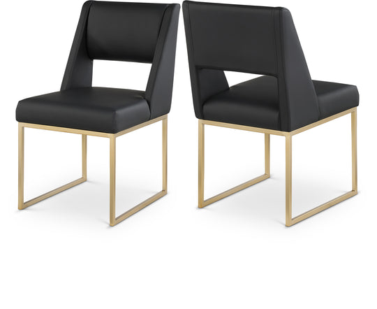 Get comfy at your dinner table with this Jayce black vegan leather dining chair. Its soft black vegan leather upholstery offers a comfortable place to sit, while its brushed brass iron base provides stability and durability....Sale price $465.00Regular price $620.00Sale price $465.00Regular price $620.00 -