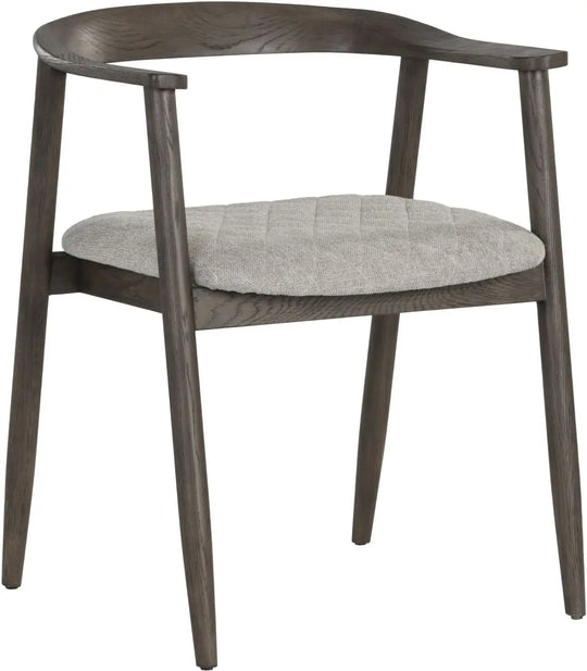 An alluring mid-century dining armchair that embraces the beauty of simplicity. Features a comfortable, quilted cushion in belfast heather grey fabric. Completed with a dark brown solid oak wood frame. Also available in dove cream fabric...Sale price From $718.00Regular price $1,099.00Sale price From $718.00Regular price $1,099.00 -