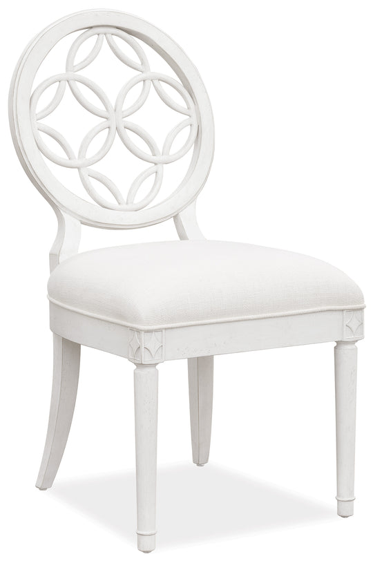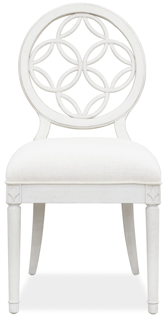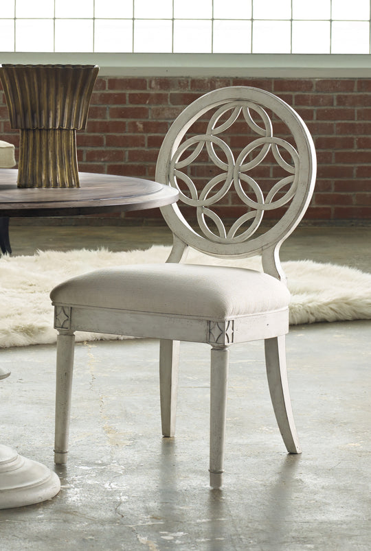 With a lace-like interlocking circle fretwork back, the Brynlee Side Chair is pretty and poised to offer comfort for gathering times with family and friends. The creamy white finish has light distressing for a laid-back luxury,...Regular price $1,049.00Regular price $1,049.00 -