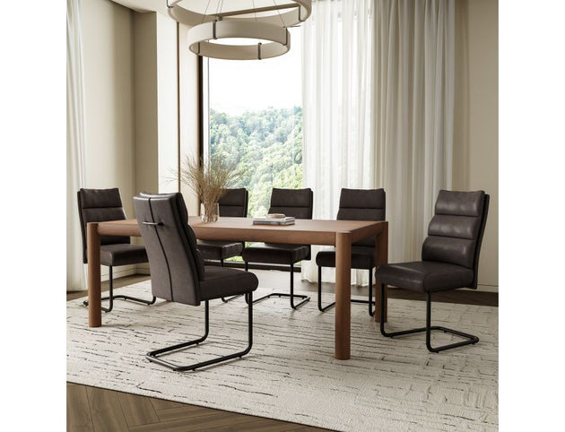 Advik and Brodi 7pc Dining Set - Walnut Table and Charcoal Faux Leather Chairs