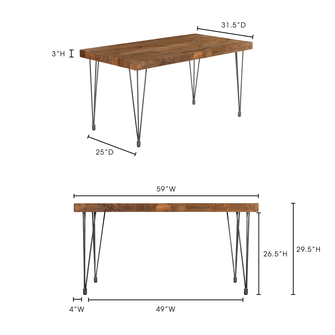 Crafted using solid recycled pine wood and sturdy iron legs, the Boneta Dining Table has an elegantly natural look and feel.