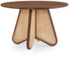 Give your dining space a traditional makeover with this Butterfly dining table from Meridian Furniture. Its solid rubber wood frame features a sleek walnut finish that complements the dining chairs. Its natural cane base is reminiscent of a mid-century design, so you can relax in style as you dine, and making this piece right at home in any living space.