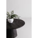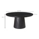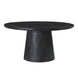 Bold in black with a sandblasted, cerused finish that accentuates the natural wood grain, the Cember dining table adds organic appeal and dramatic presence to any condo or smaller living space. A natural expression of modern rustic style, this piece features an oversized drum-shaped, tapered pedestal base, a solid foundation to a stately silhouette.