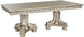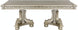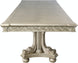 Product Description: Old-World European styling is captured in the dramatically elegant Catalonia Collection. Traditional design elements reign at every turn - egg and dart molding, acanthus leaf carving, bead molding, gold tipping and extravagant carvings - creating a sophisticated look for your dining room. A traditional platinum gold finish is utilized to highlight the oak veneer and subtle decorative inlay pattern found on the dining table's top.
