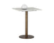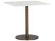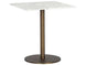 An Art Deco inspired 24" square bistro table, featuring a solid Carrara marble top with an antique bronze steel base. Perfect for restaurants and smaller dining spaces. Also available with a 30" square and 35" round top. As marble is a natural material, unique veining, pitting, fissures, micro-cracks and colour variations are all characteristics that add to the uniqueness and beauty of each piece.