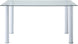 Specifications: Made of glass and metal. White metal finish. Glass top. Seats 6. Assembly required. Prop 65 Information.